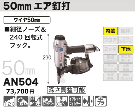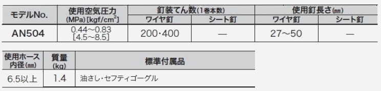 釘装てん数(1巻本数)ワイヤ釘200・400