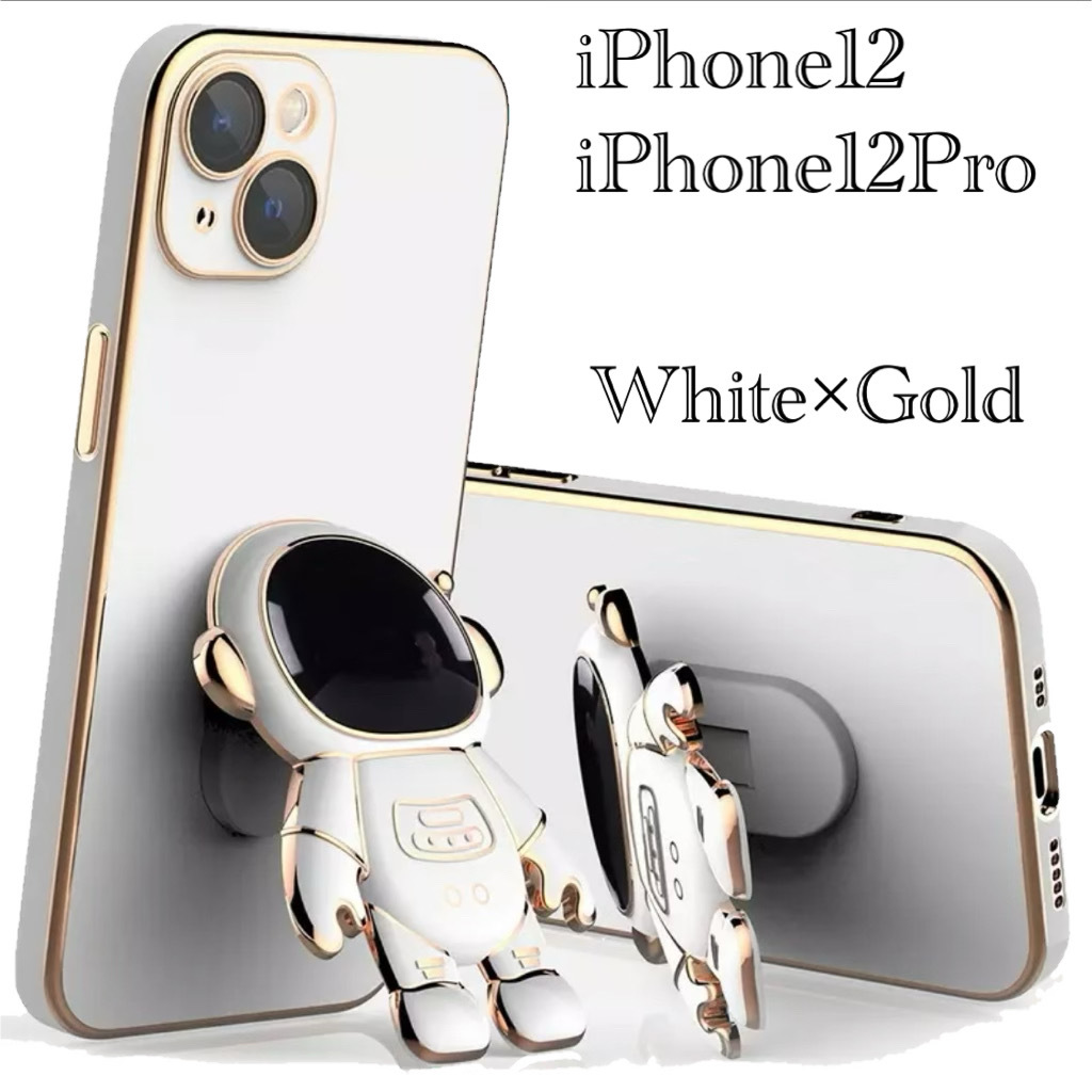 iPhone12 iPhone12Pro スマホケース シリコン スマホカバー メッキ加工 宇宙人 宇宙飛行士 シリコンケース TPU 液晶フィルム ホワイト 1