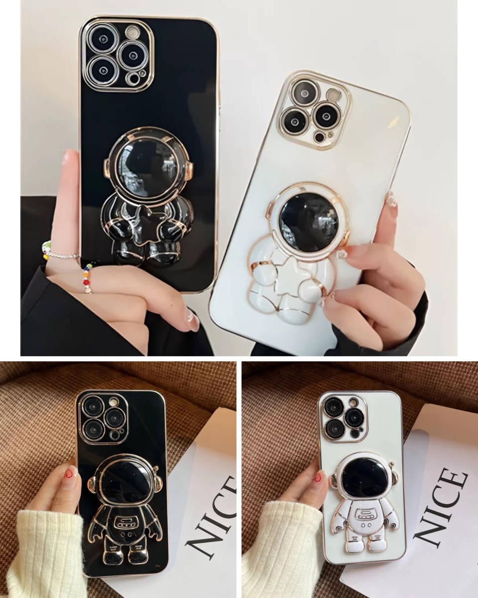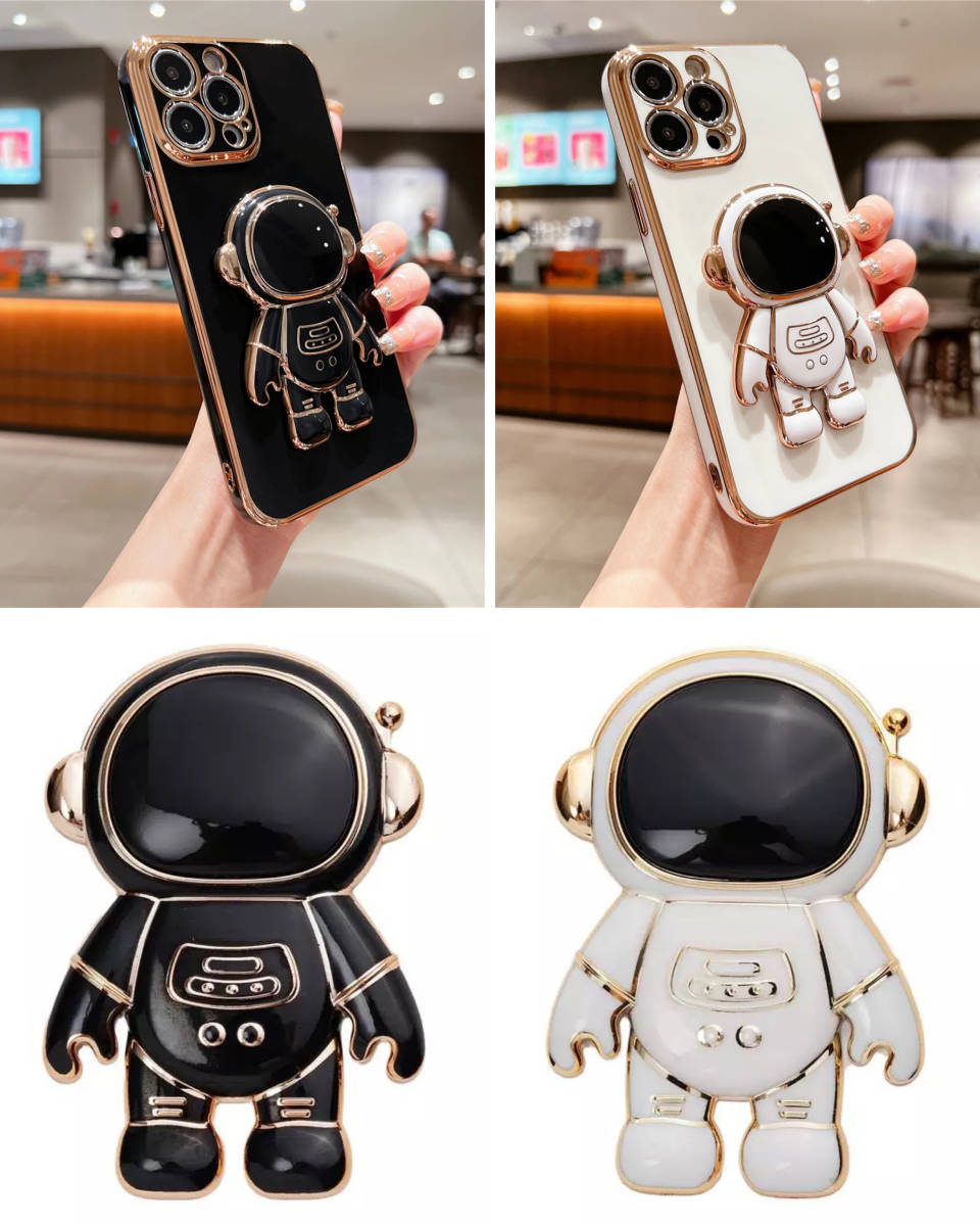 iPhone12 iPhone12Pro スマホケース シリコン スマホカバー メッキ加工 宇宙人 宇宙飛行士 シリコンケース TPU キズ防止 シンプル液晶フィルム ゴールド