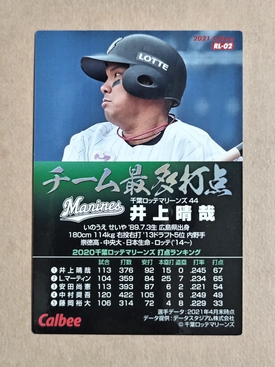 カルビー プロ野球チップス 2021 通販限定 チーム最多安打カード 井上晴哉(ロッテ) RL-02