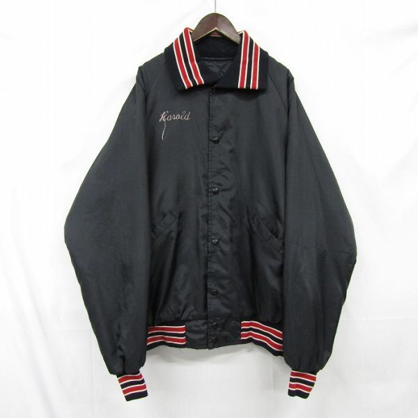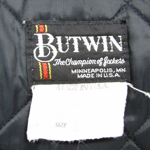 USA製 サイズ L BUTWIN ナイロン ジャケット スタジアム ジャンパー ブラック プリント バトウィン 古着 ビンテージ 3S2707