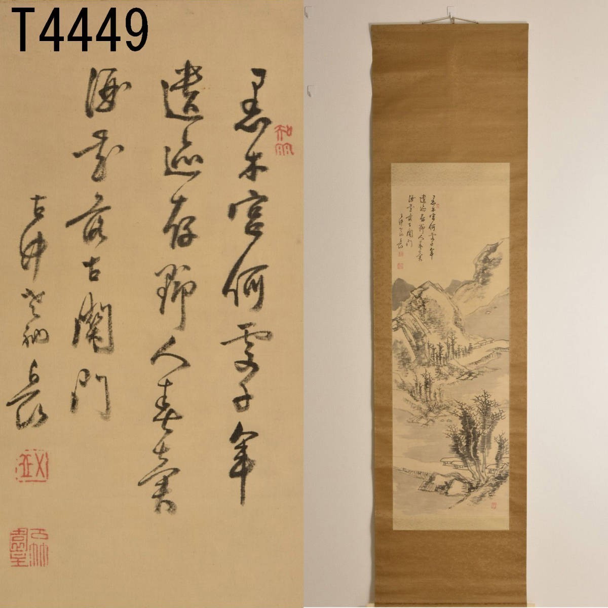 T04449 五岳上人之山水画 鑑定箱付 掛軸:真作