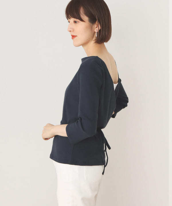 大幅値下げ!新品未使用タグ付き BEAMS HEART ビームスハート シンプルなデザインのカシュクール 前後2WAYで着用可能 カットソー ネイビー