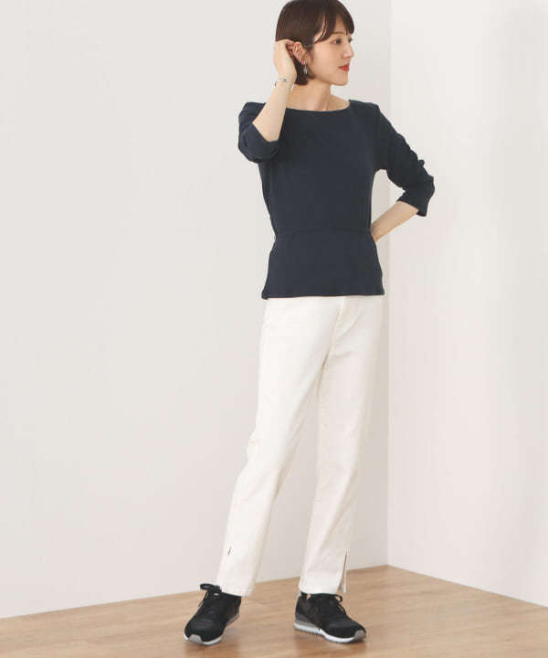ストレッチの効いた柔らかなコットン地が、程よく体にフィットするひと品。