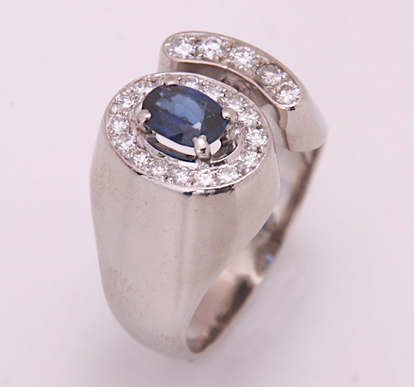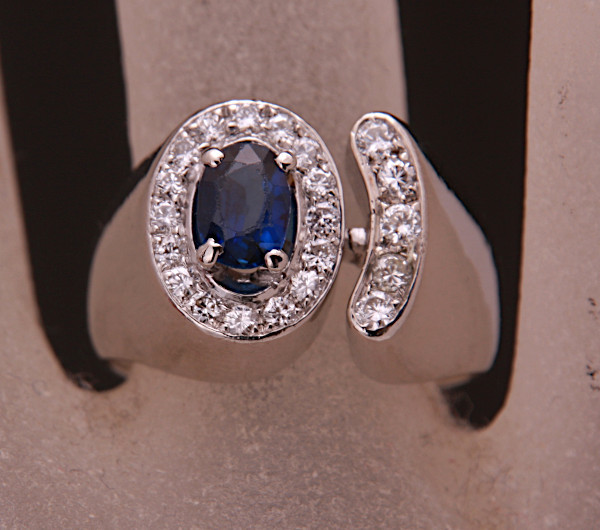 0.50ctのサファイアとメレダイアが輝くリングです。