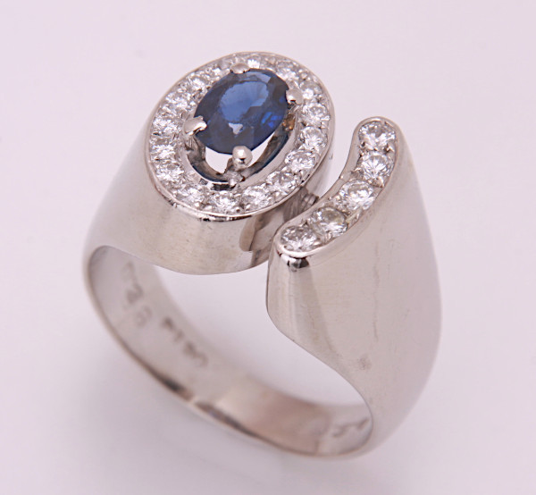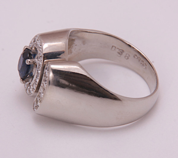 《質屋出品》Pt900★天然サファイア0.50ct+ダイアモンドリング★C-5942