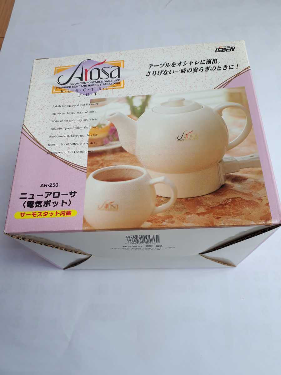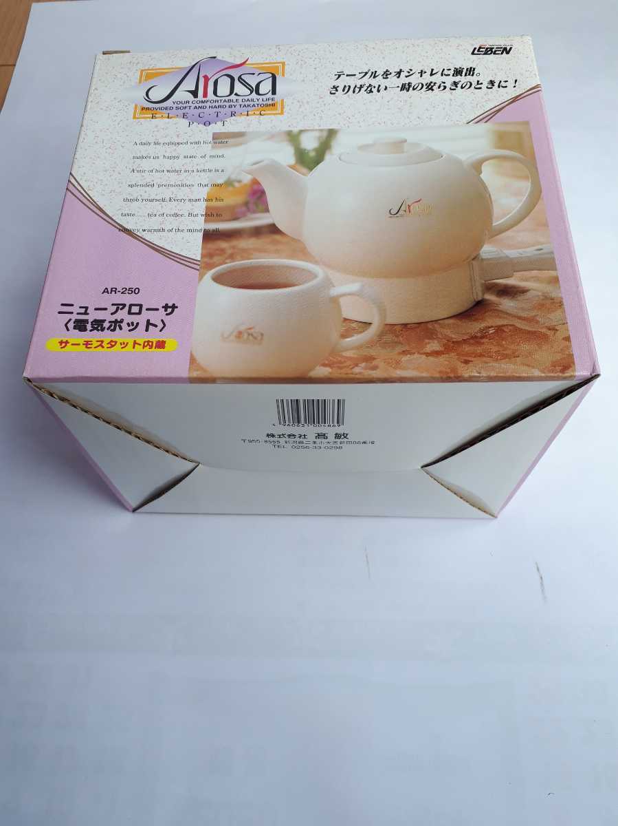 ●レトロ。ニューアローサ。電気ポット。●(製造)新潟県三条。●未使用。保管品。●撮影の為開封。●●陶器製。★自宅保管品。99年3月製造。●●パッケージにあるカップは付いてません。イメージです。