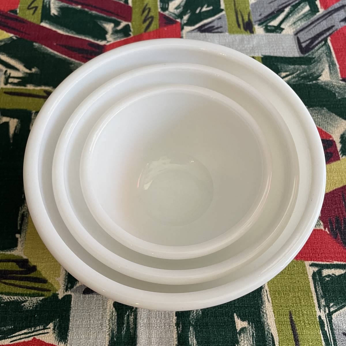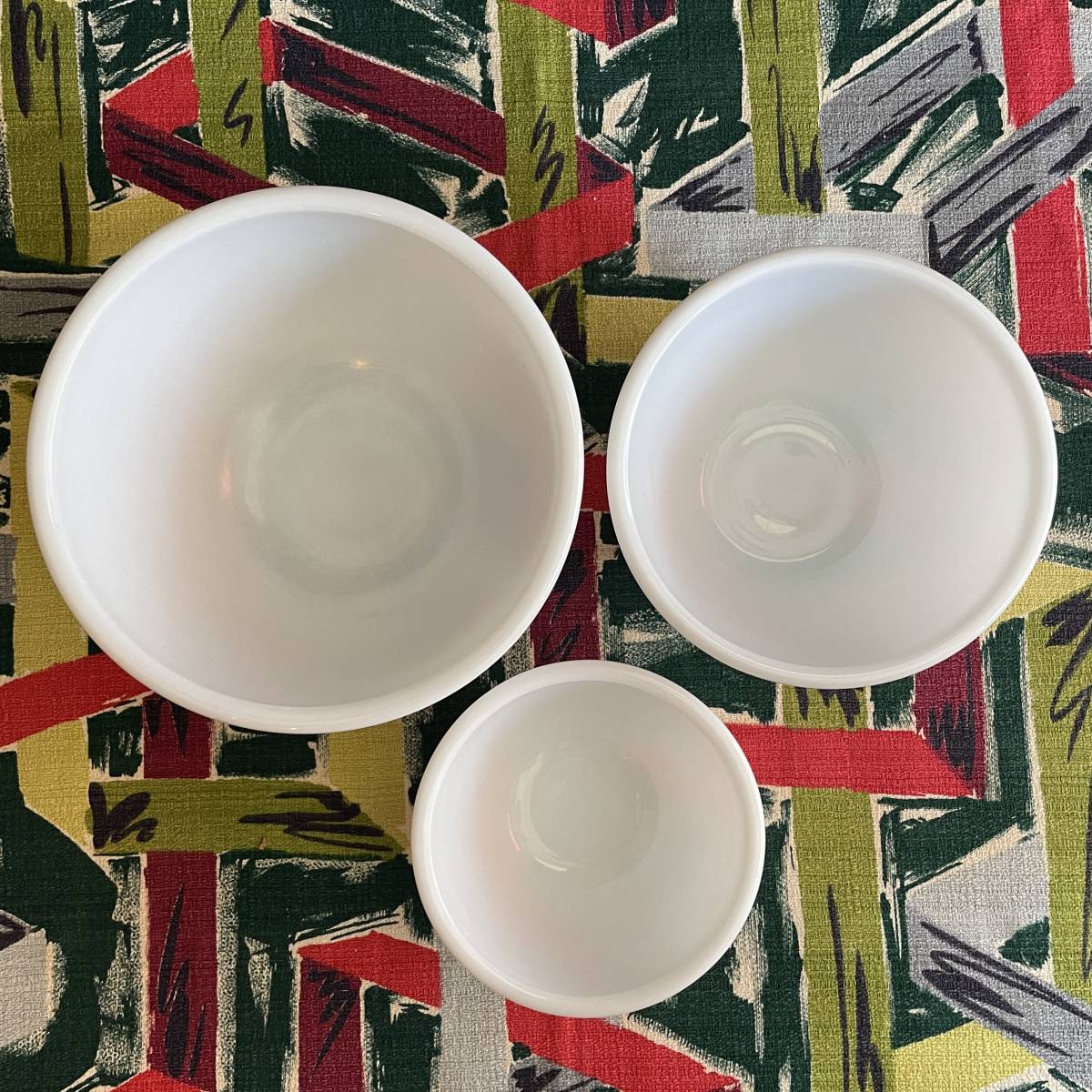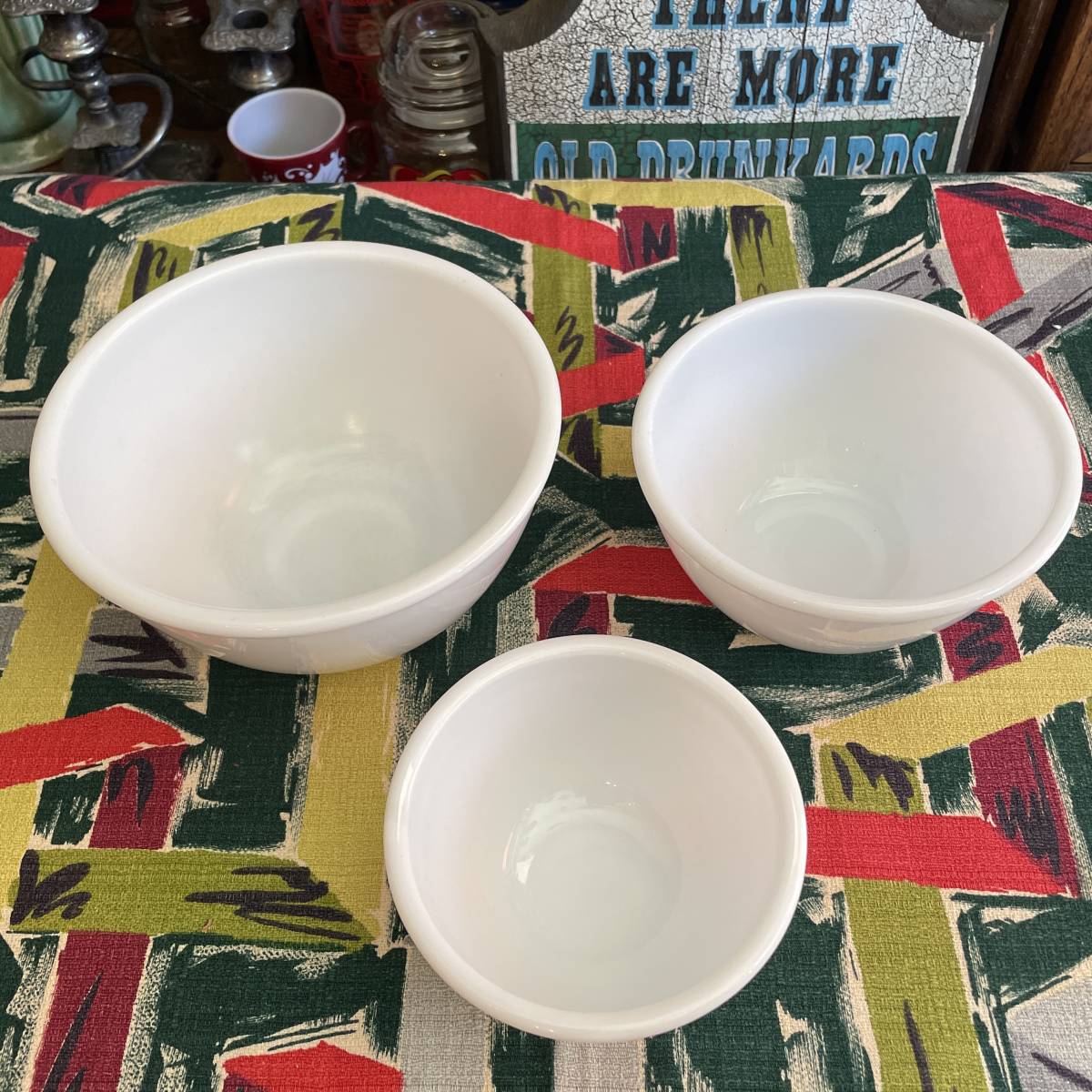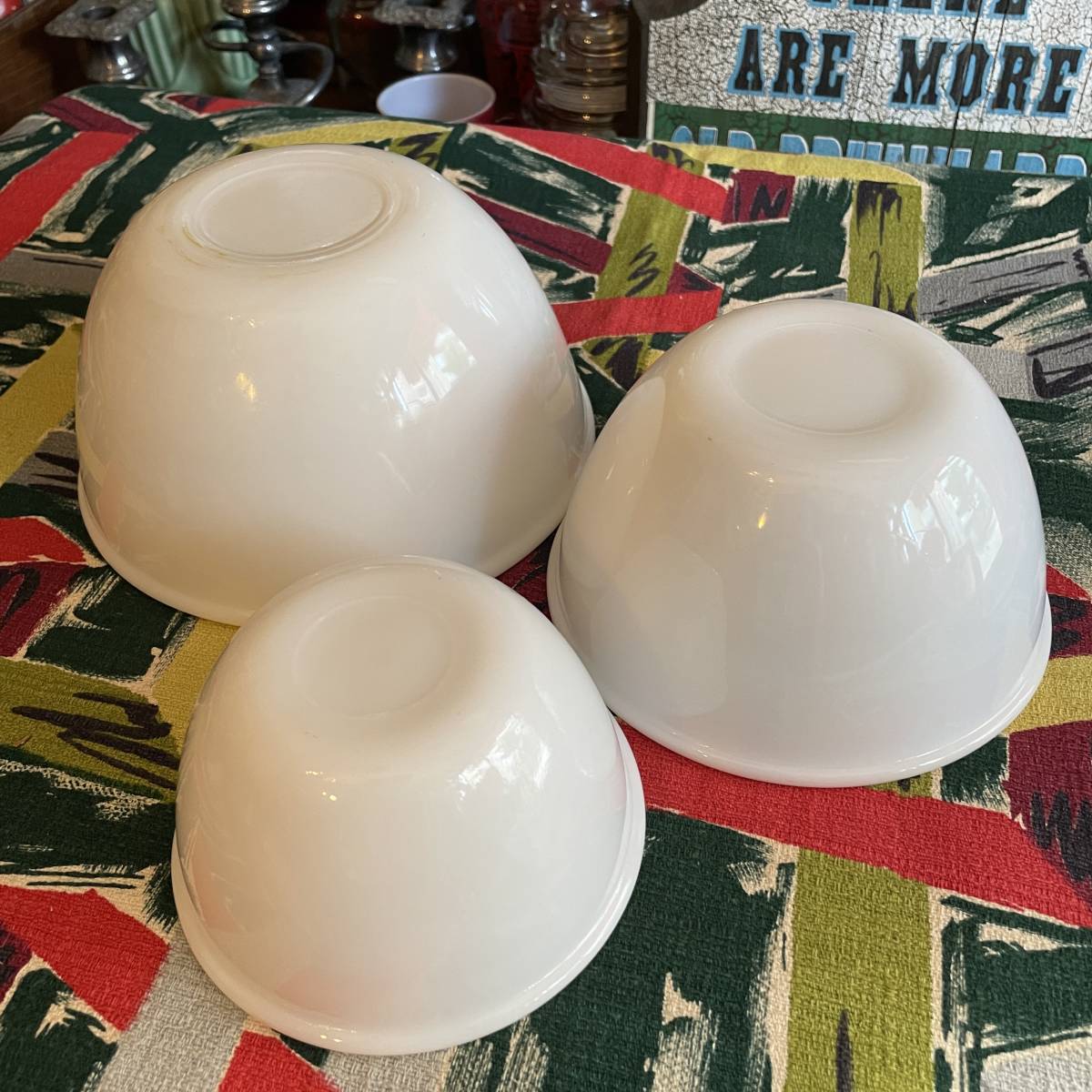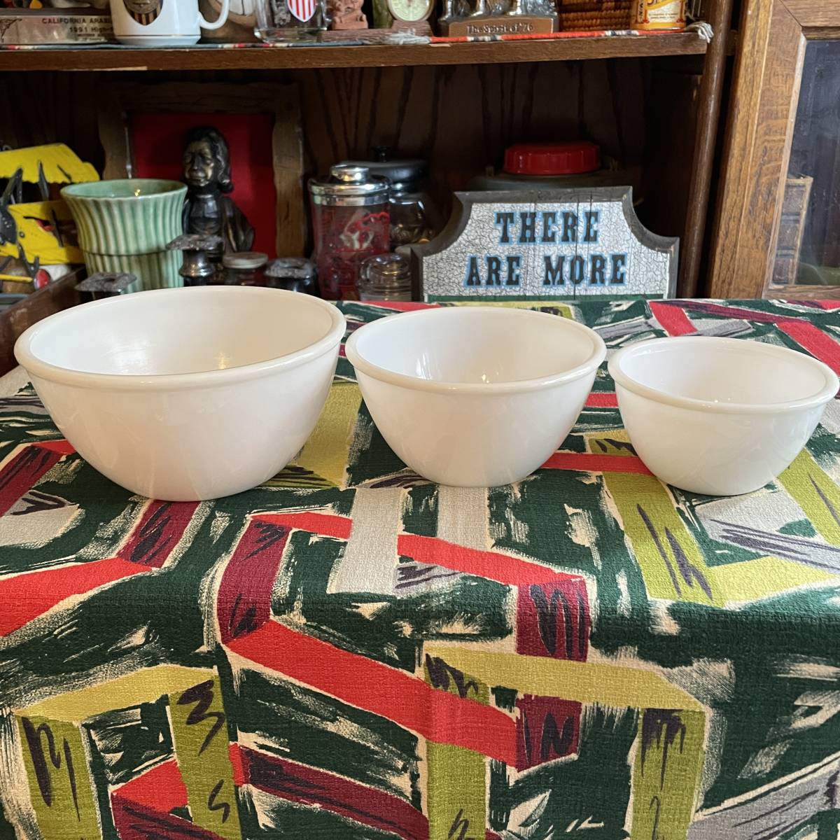 貴重!50's〜アメリカアンティーク白ボウル3個セット ミルクガラス食器/骨董firekingUSAダイナー50’s60’sヘーゼルアトラスフェデラル