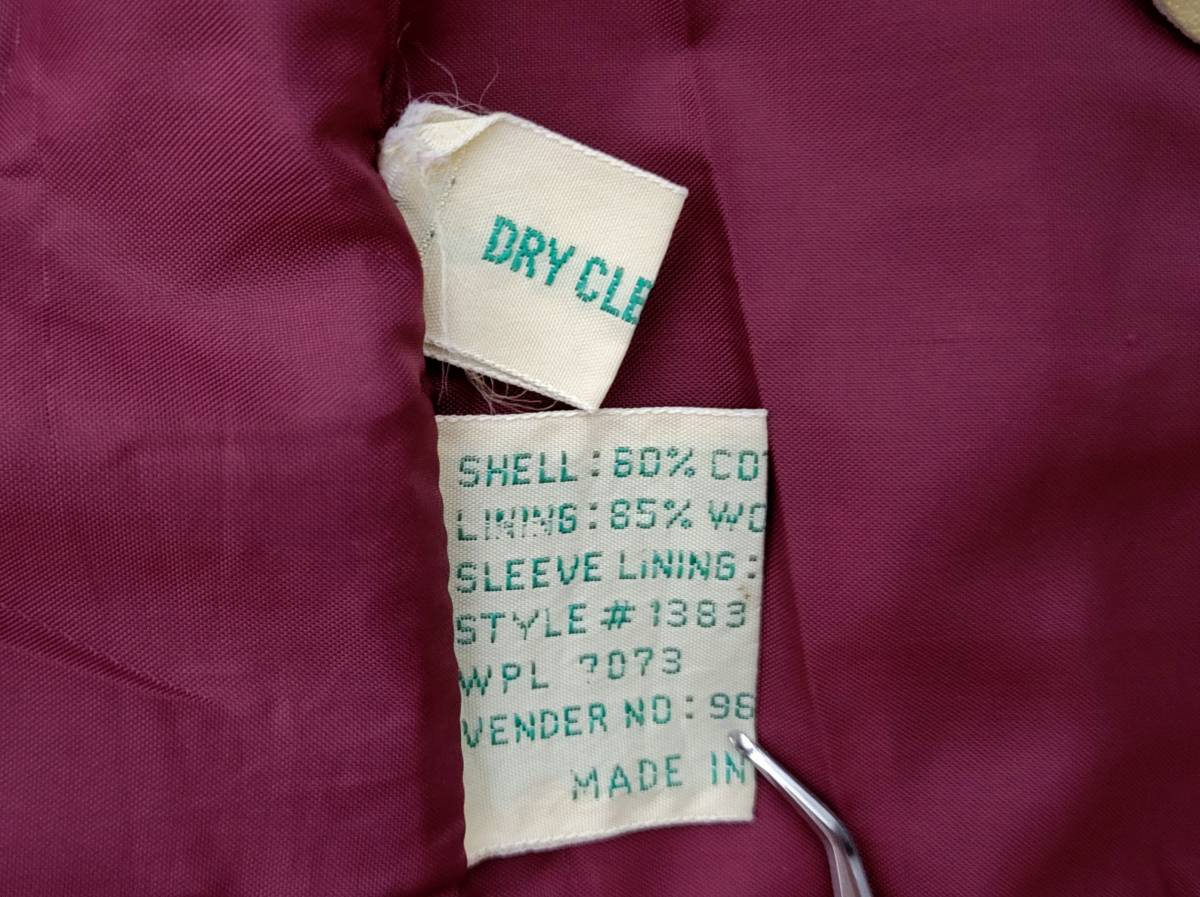 表地は60%コットン40%ナイロン、裏地は見頃が85%ウール15%ナイロン、袖裏が100%ナイロンです。