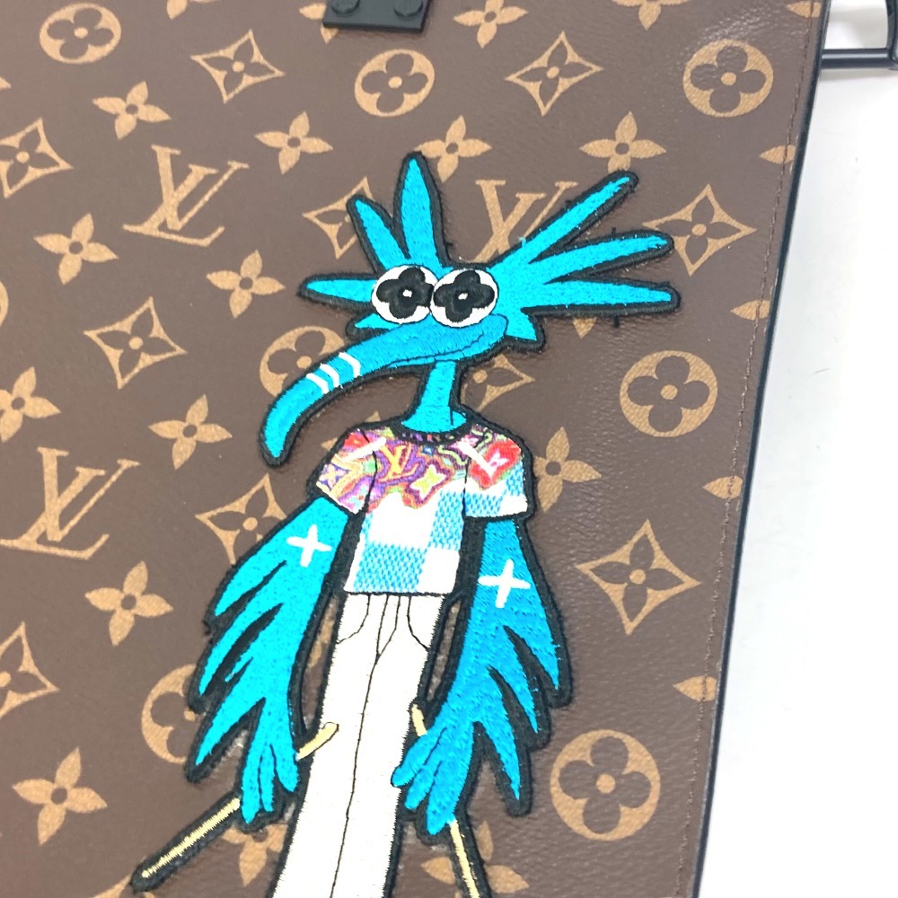商品説明「The Adventures of Zoooom with friends(ズームと仲間たちの冒険)」から着想を得た刺繍仕立てのパッチをモノグラム・キャンバスにあしらい、生き生きとした印象に仕上げました。手持ちでも、腕に掛けてもご使用いただけます。