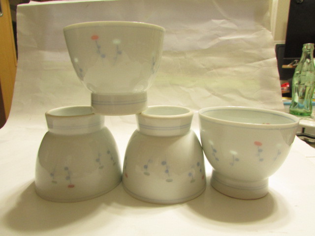 即決商品( 会津若松・旧家・蔵出し )昭和レトロ・有田焼・順山作・花模様 (古い時代の味わいのる湯飲み茶碗4客)貴重・珍品