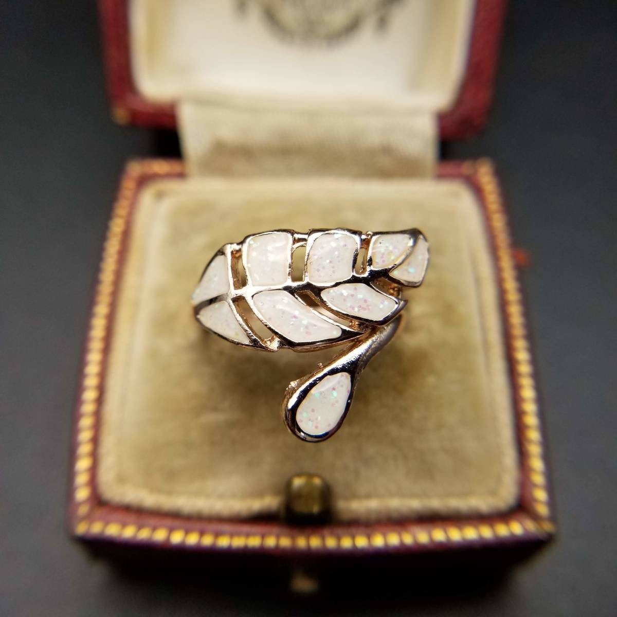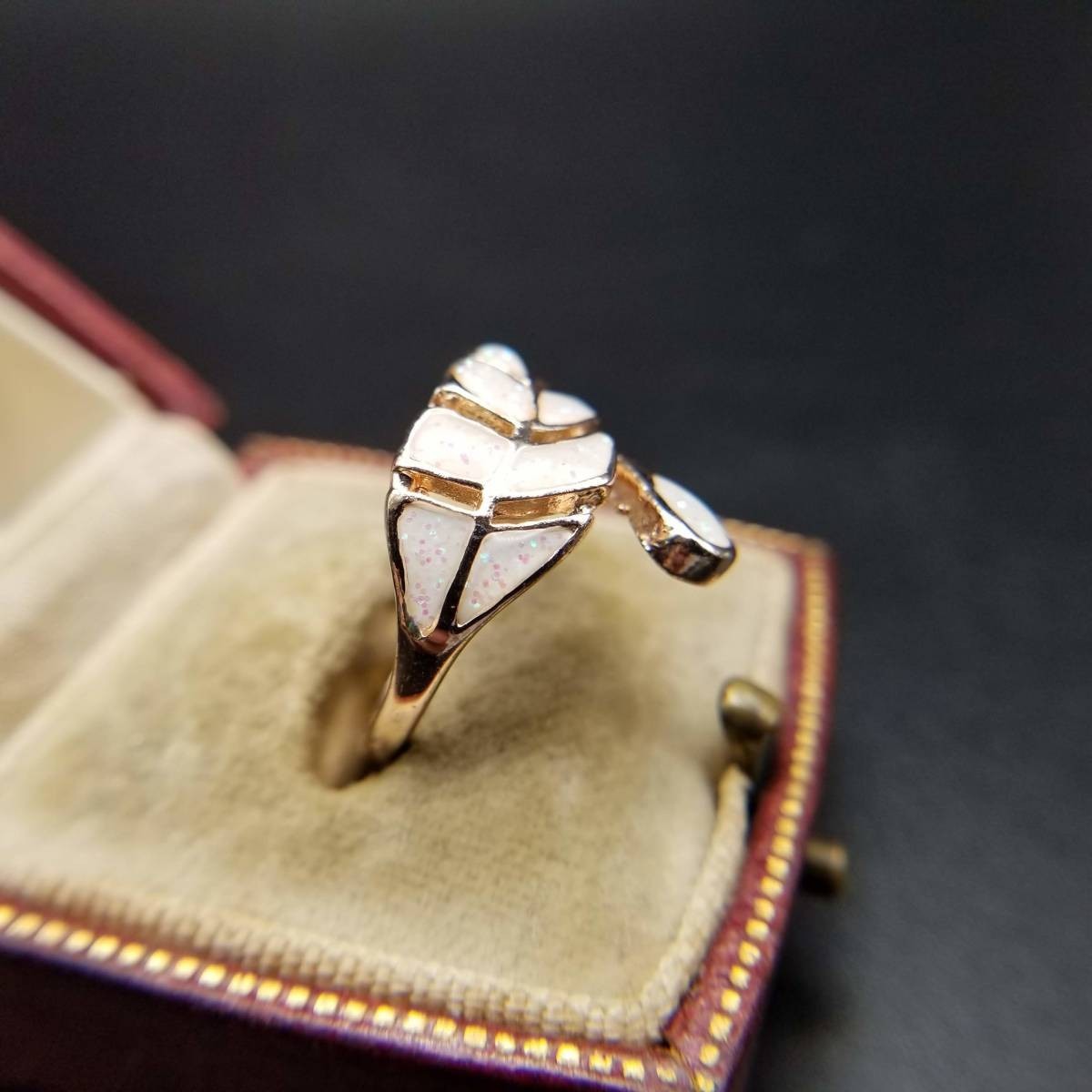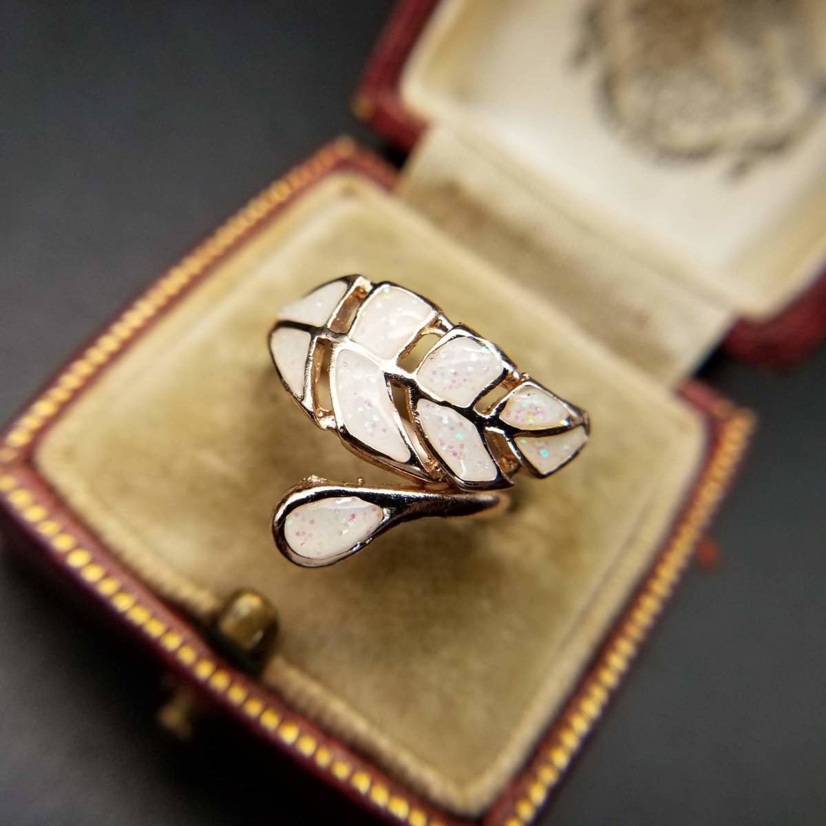 ホワイト エナメル ラメ 925 シルバー 葉 米国 ヴィンテージ リング 銀 指輪 昭和レトロ AU926