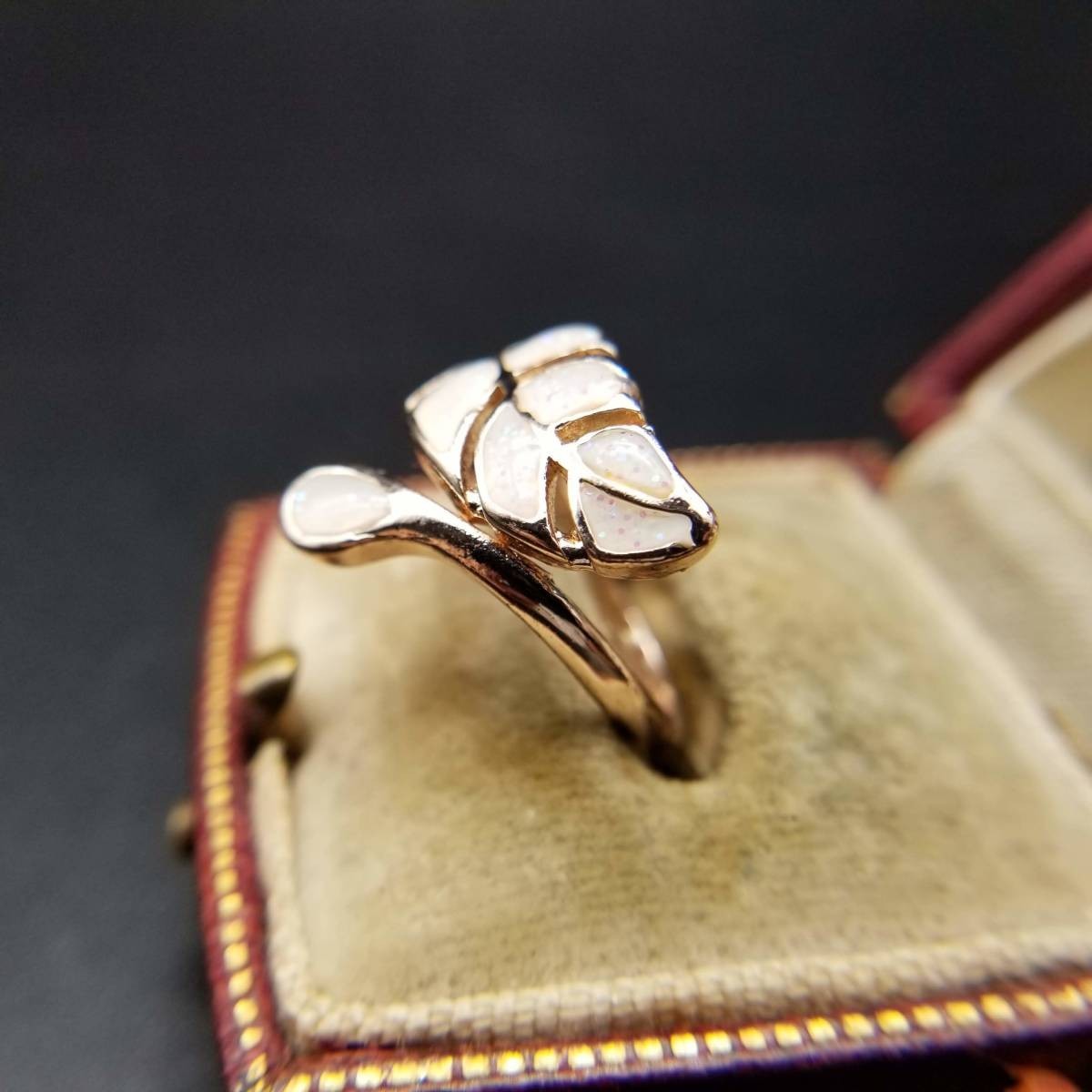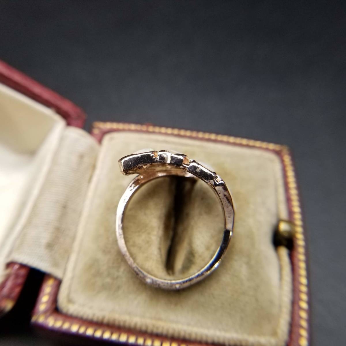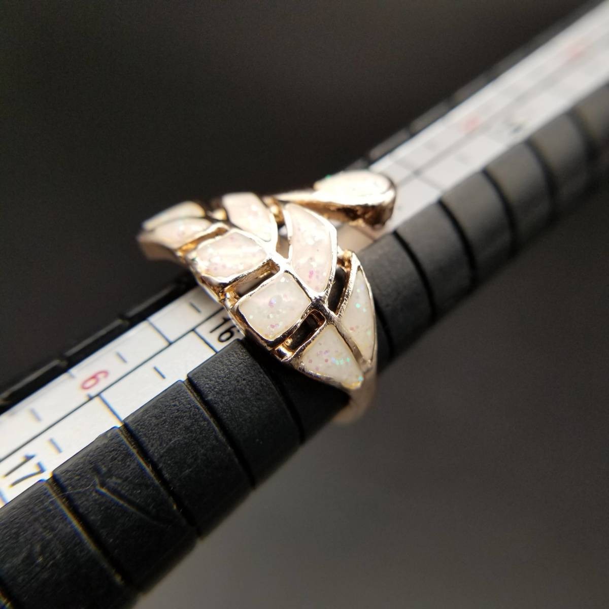 ホワイト エナメル ラメ 925 シルバー 葉 米国 ヴィンテージ リング 銀 指輪 昭和レトロ AU926