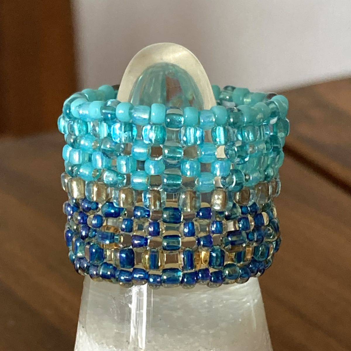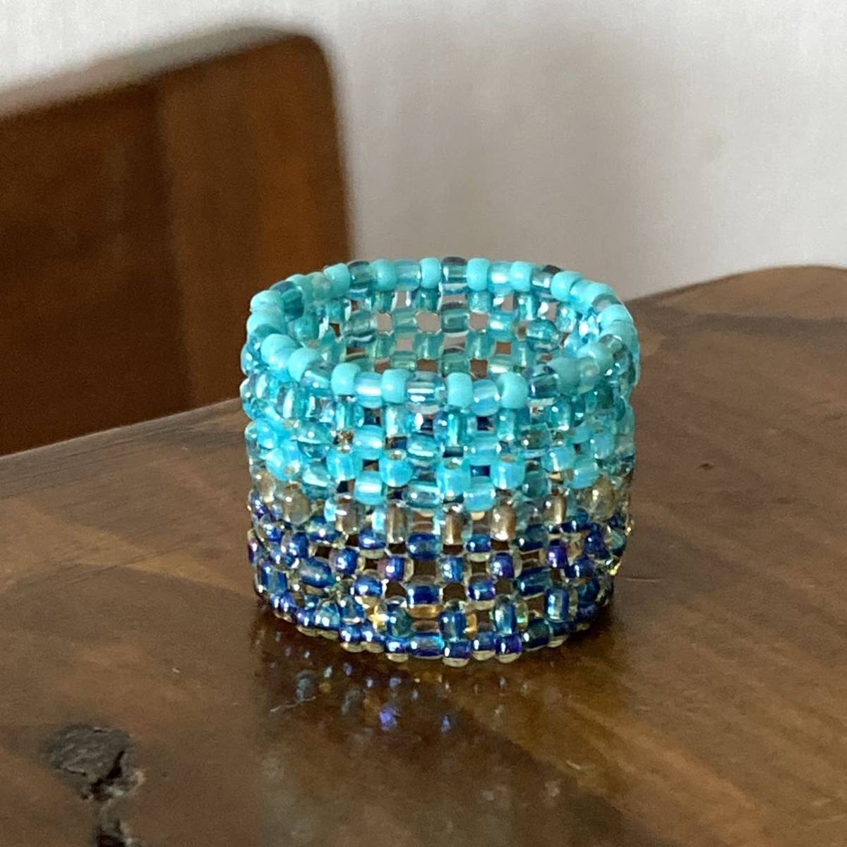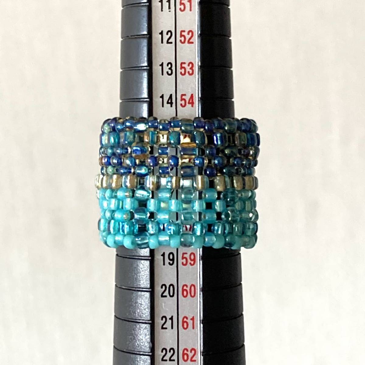 15-17号 ビーズ リング 指輪 三角ビーズのツートンカラーのワイドリング ブルー系です。
