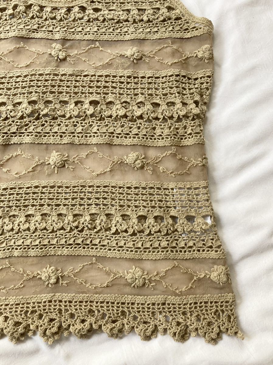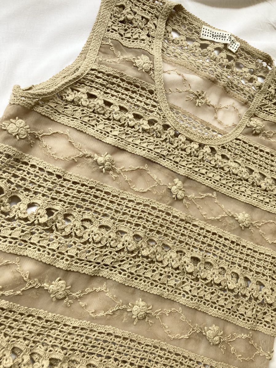 | カネコイサオ バラ刺繍とニットレースタンクトップベージュ | |||