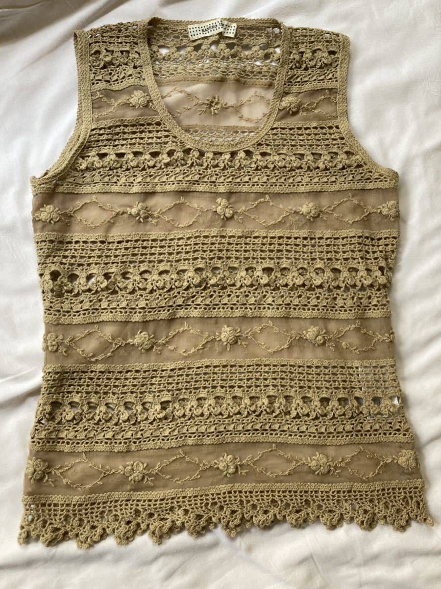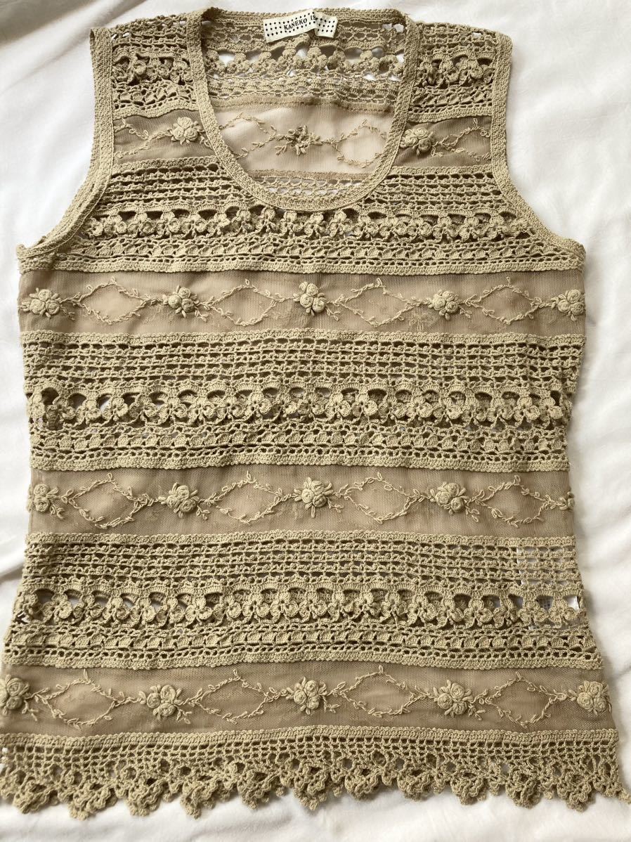| カネコイサオ バラ刺繍とニットレースタンクトップベージュ 繊細なニットでネットにバラ刺繍のあるセットアップです。 カタログにも載っていて 使い勝手がよく多色買いしてしまいました。他の出品もごらん下さい やや細身です サイズ: タンクトップ:胸幅40センチ 着丈48センチ きれいな状態です。 | |||