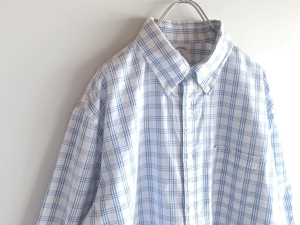 ネコポス可 BROOKS BROTHERS ブルックスブラザーズ REGENT FIT チェック柄 コットン 半袖 BDシャツ XL ホワイト ブルー 白 青 大きいサイズ