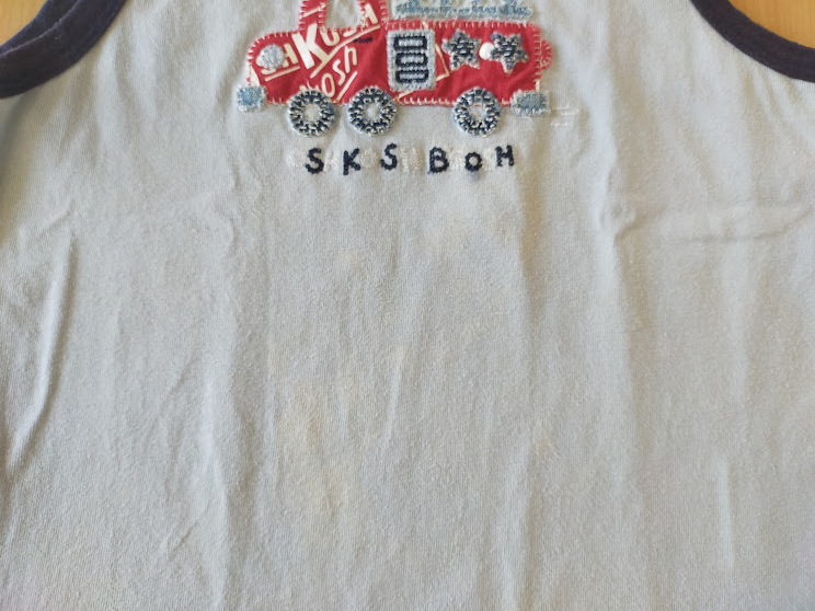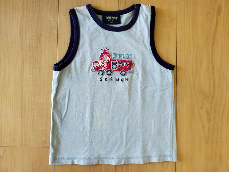 ○ OSHKKOSH  95㎝  水色  消防車のアップリケ