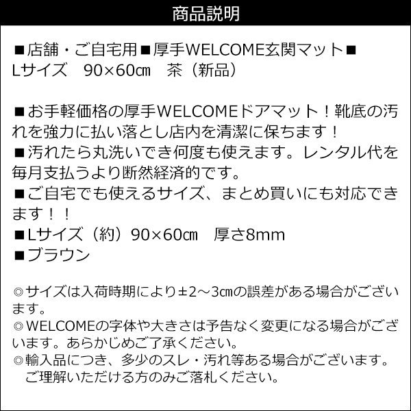 玄関マット ブラウン Lサイズ 2枚組【90×60cm】厚手 WELCOMEマット/10