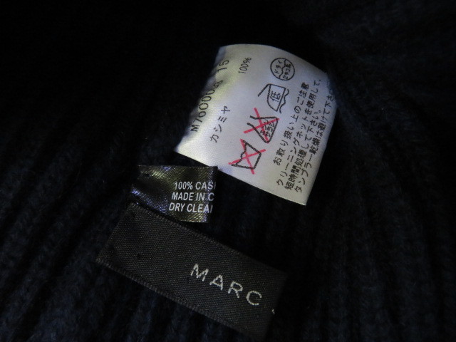 ☆上質 MARC JACOBS マークジェイコブス カシミア100% ニットキャップ ワッチキャップ NAVY ネイビー オリジナルバッチ付き☆