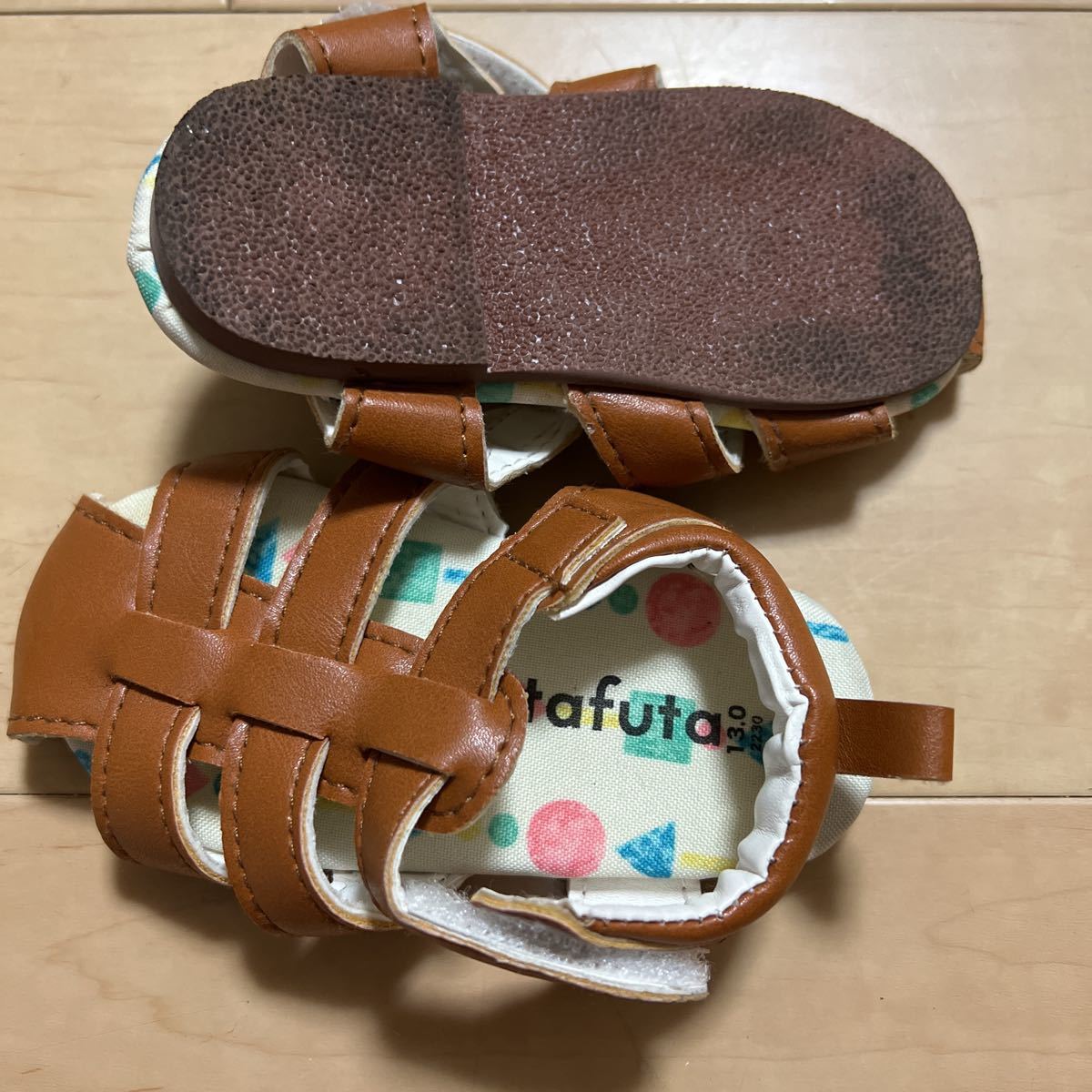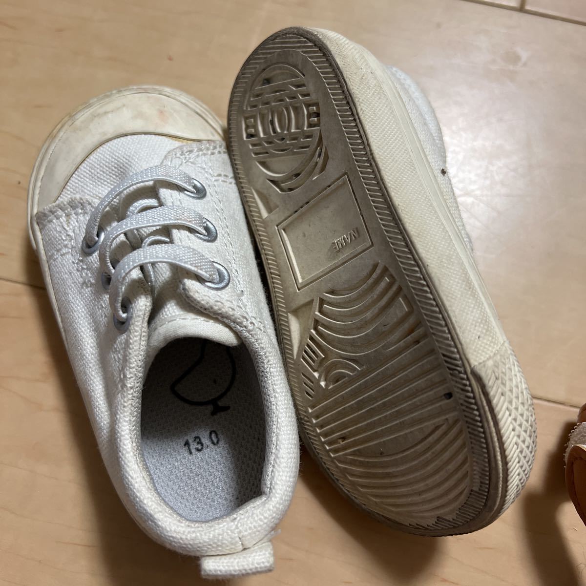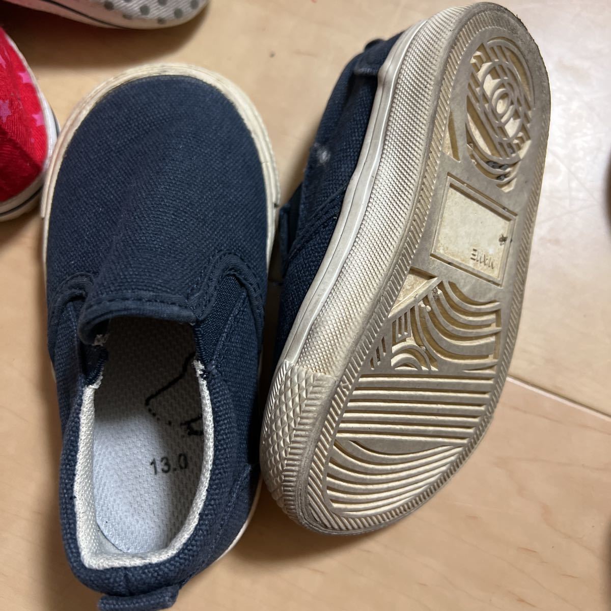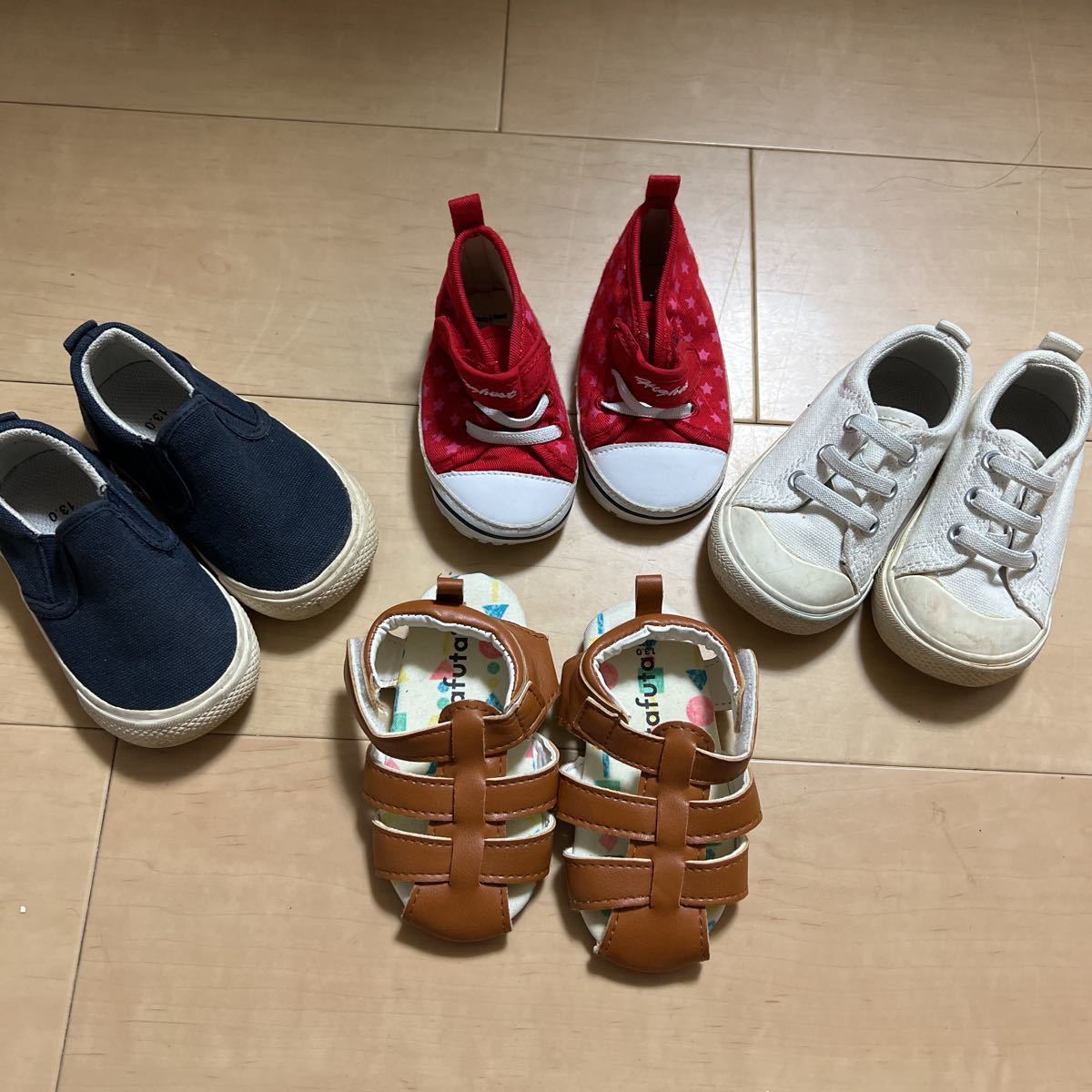 白と紺のスニーカーとブラウンのサンダルは全て13㎝