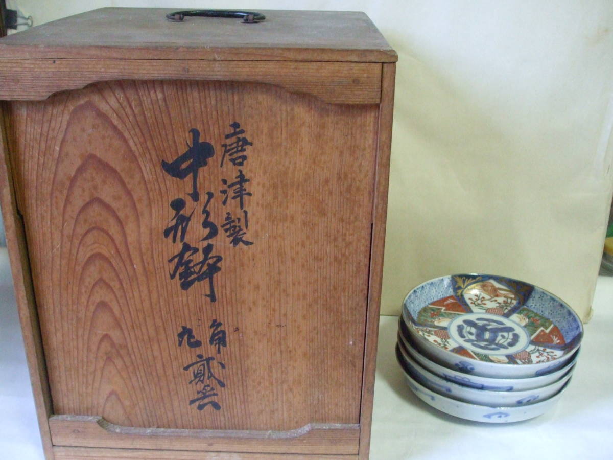 錦絵の小皿4枚と木箱です。木箱の表書きは