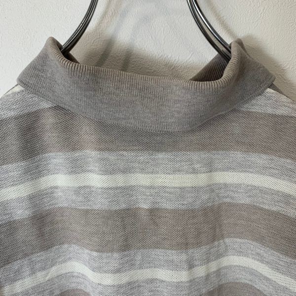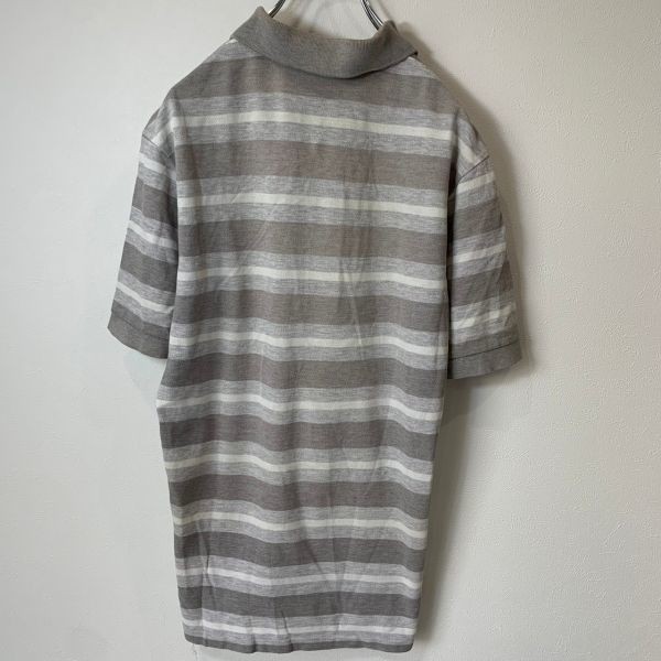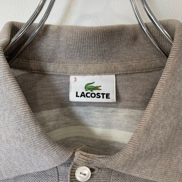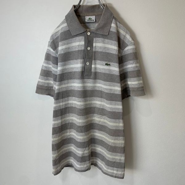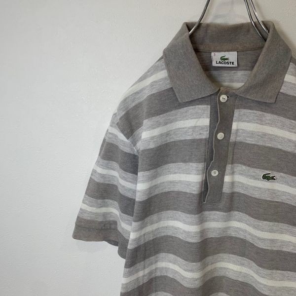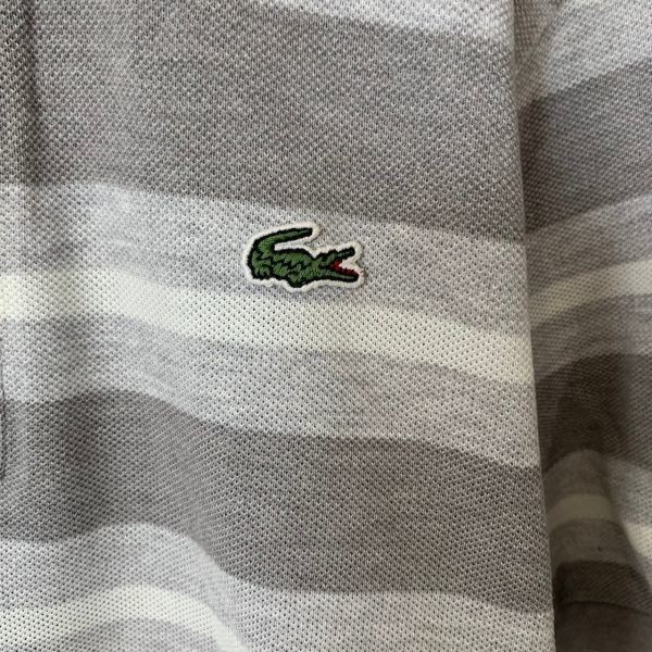 [KWT504] LACOSTE ボーダー半袖ポロシャツ グレー×ホワイト レディース サイズ不明 ポス