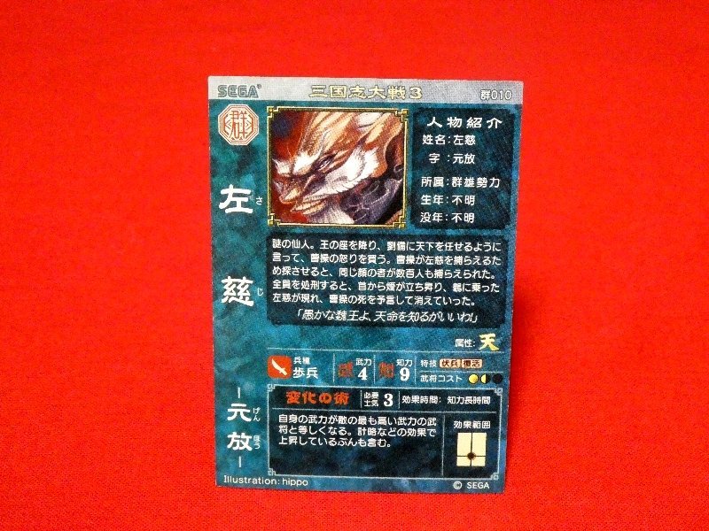 三国志大戦3 キラカードトレカ 左慈 群010です。