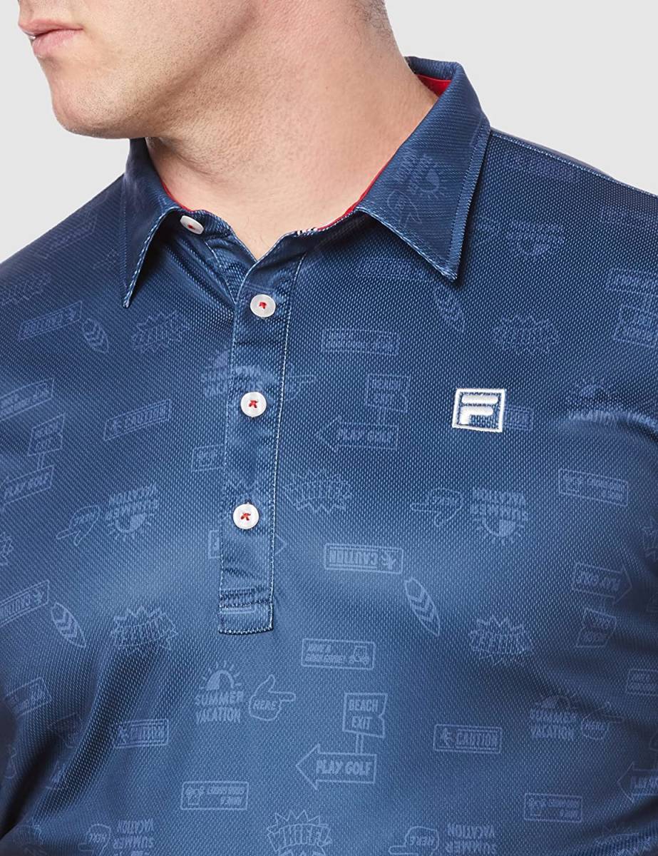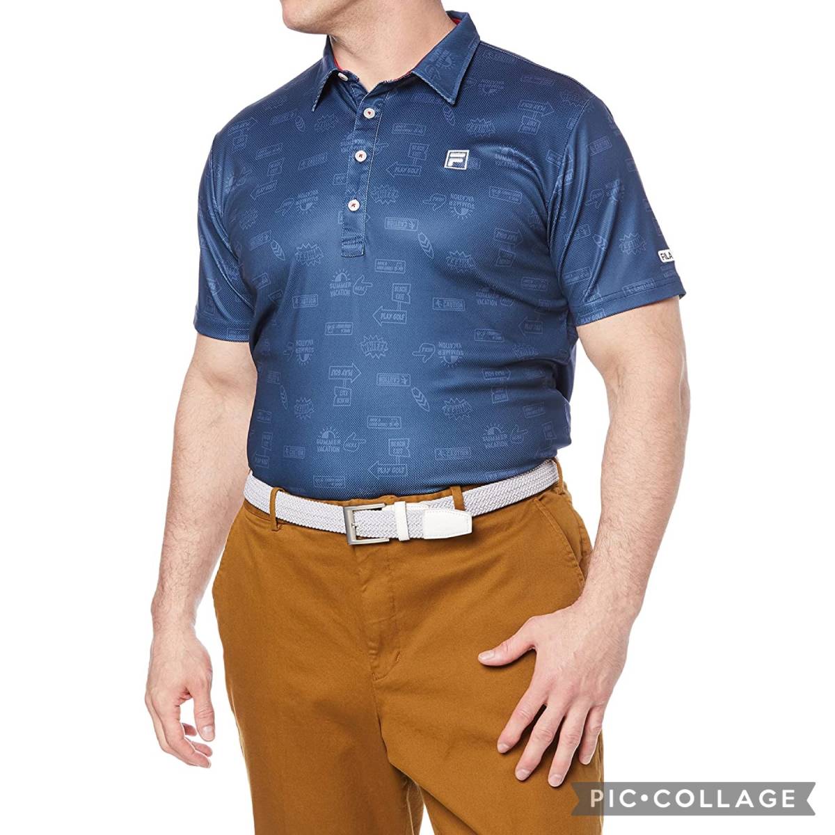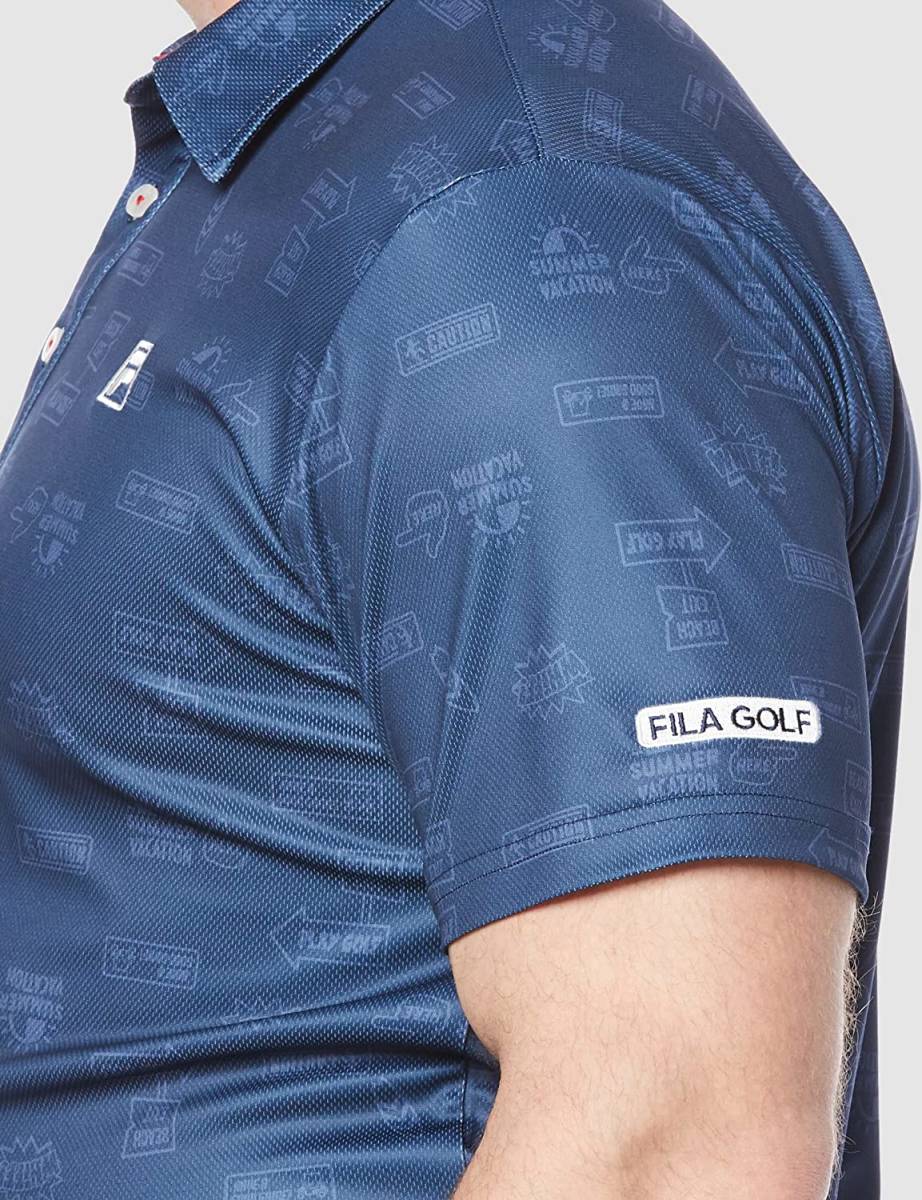 新品 フィラ ゴルフ 半袖 ポロシャツ Lサイズ 紺 ネイビー 742-607 総柄 税込8,690円 吸汗速乾 UVカット ゴルフシャツ ゴルフウェア