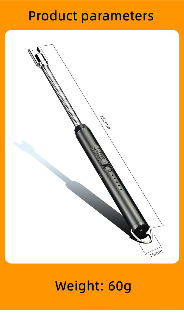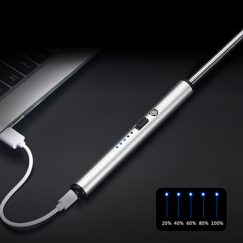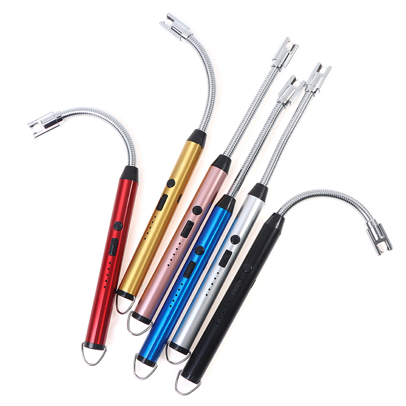 商品説明 | ガス・オイルは不要! USBで充電することで何度でも使える電子ライターです。 電子ライターのため、通常のライターと違い風で消えることがありません。 屋外の作業やスポーツをする方に特におすすめです。 他にもキャンプ、ハイキング、BBQ、アウトドア、キャンドル、料理、ガスレンジ、暖炉、花火などの点火に。 軽量設計ですので持ち運び楽々です。 完全に充電されると、その充電で最大 100 ~ 200 回たばこに火をつけるのに十分な長さの充電が保持されます。 バッテリー残量はロックを解除すると5段階で表示されます。 長いネック部分は360度回転させることができ、小さな隙間に差し込むことも可能です。 さまざまな用途に対応します。 スライドしてロックを解除するとオンオフボタンが現れるため、誤操作を防ぎ安全です。 また、オンオフスイッチだけでなくセーフティロック機能も備わっており、約10秒間押しっぱなしにしていると消灯します。 ついつけたままになることもありません。 材質:金属、ABS樹脂 色:ゴールド(金) 他にもブルー(青)/ブラック(黒)/レッド(赤)/ピンクがございます。 長さ:約25cm 幅:約1.5cm 重量:約60g セット内容: ライター本体、USBケーブル |