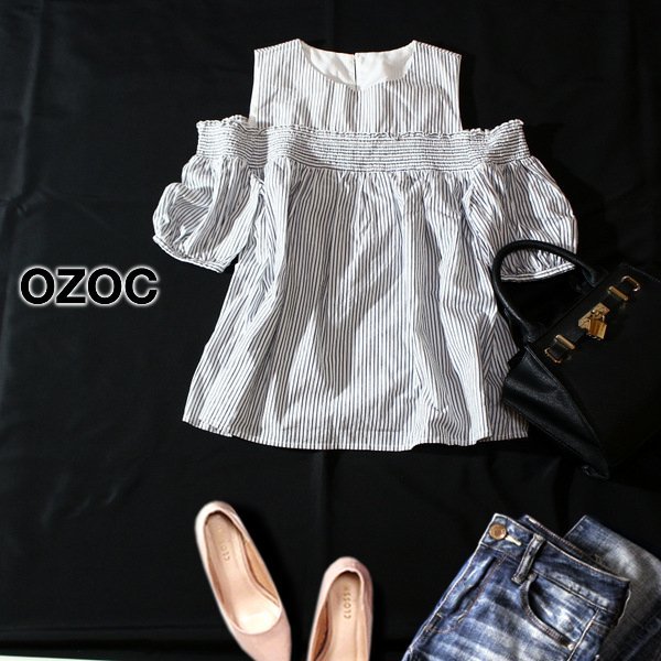 ☆☆ 美品 (株)ワールド OZOC オゾック ☆☆ 可愛いカットショルダー コットン カットソー 38号 M 春 夏 23B08