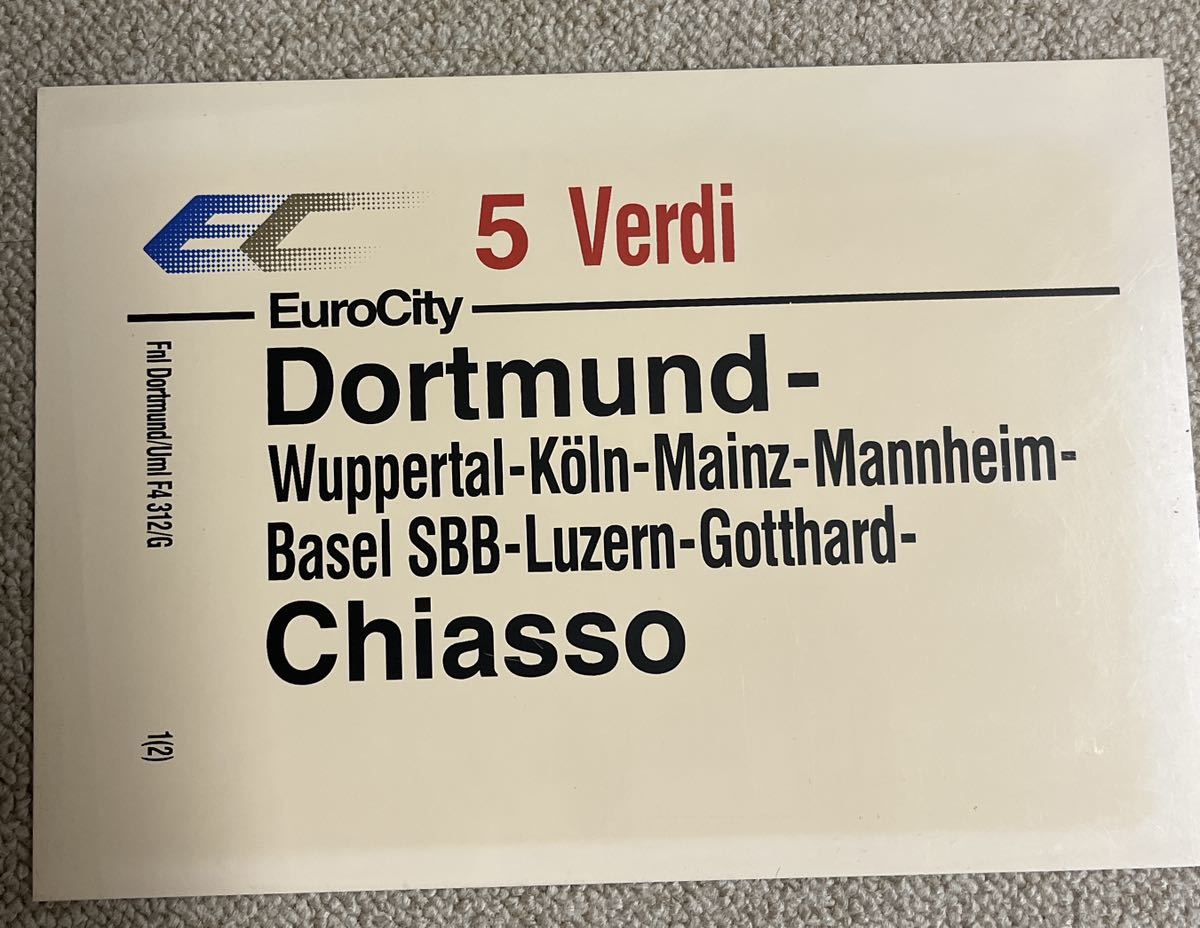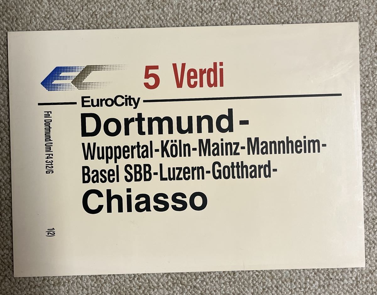 DBドイツ国鉄ヴェルディ号サボ、A4サイズ塩ビ製、写真は商品の面裏です。