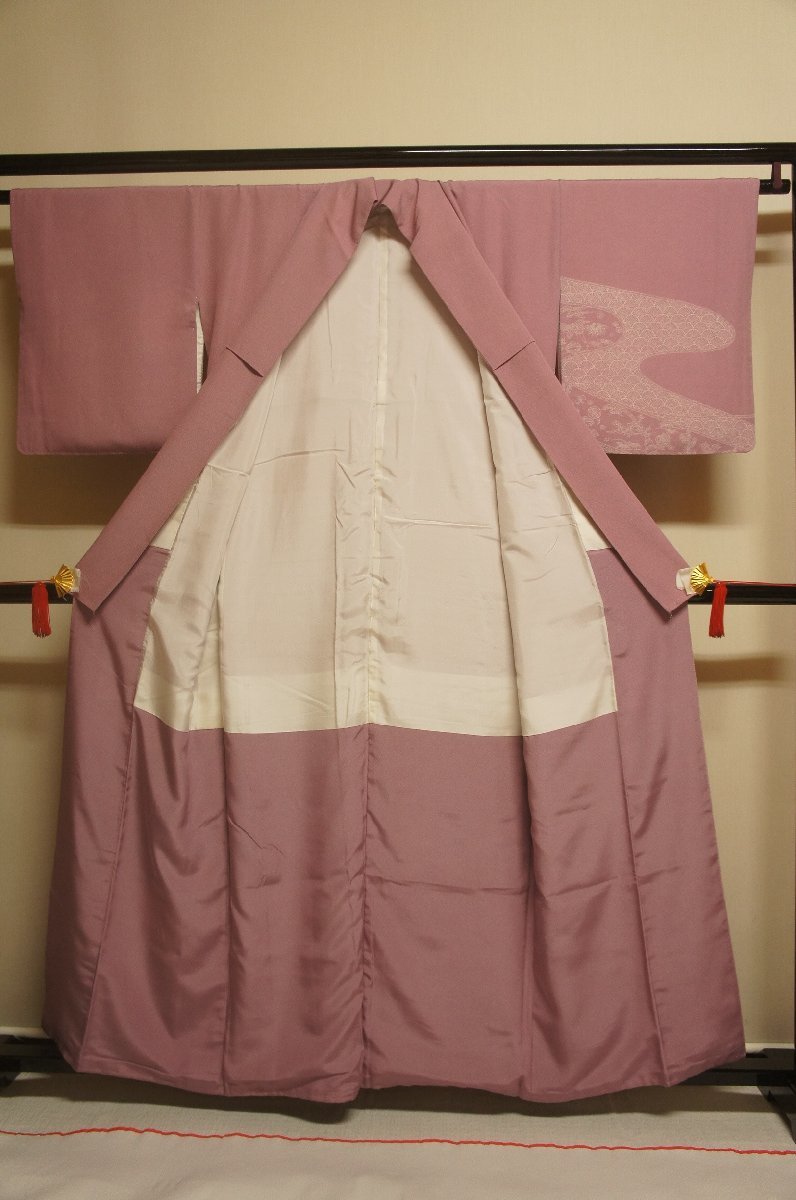 商品名正絹京藤色地鮫小紋紐流し青海波宝尽し模様附下[H14550]