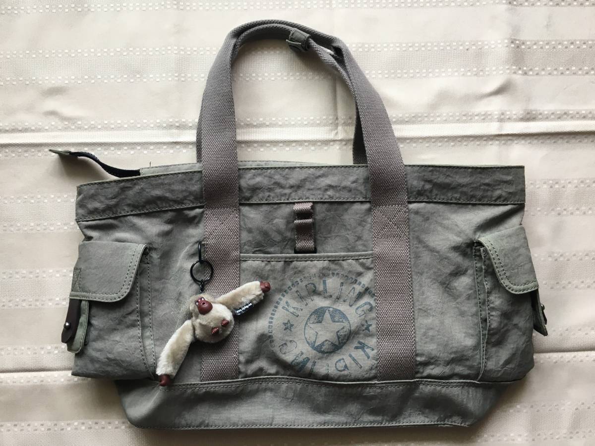 送料込 即決 キプリング kipling ボストンバッグ グレー