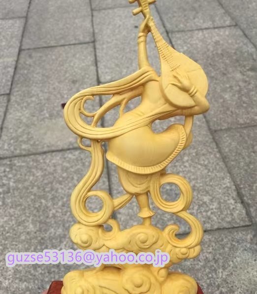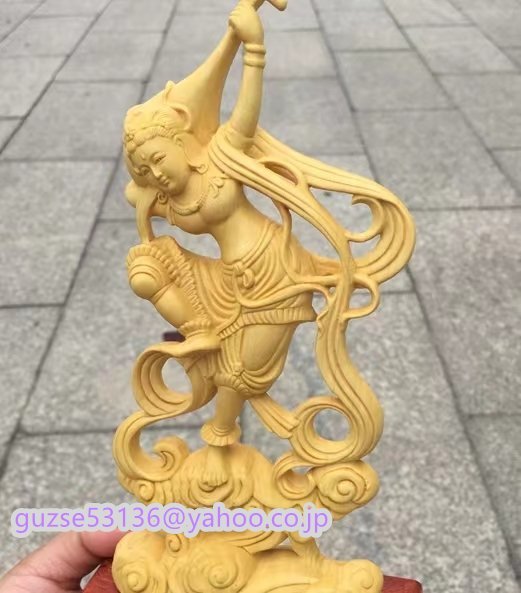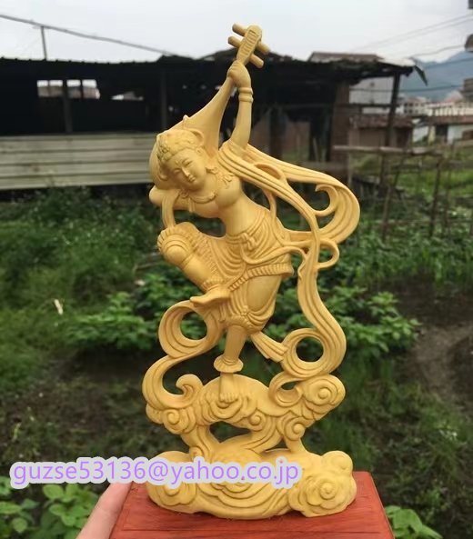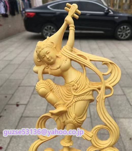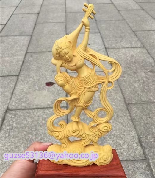 美品☆木彫仏像 黄楊木琵琶飛天女 職人手作り 弁財天像