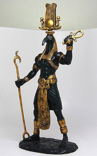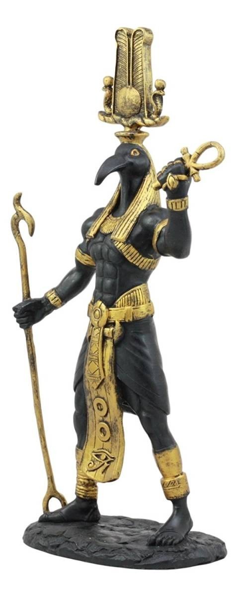 【EGYPTIAN IBIS HEADED THOTH HOLDING WAS AND ANKH 12" STATUE MAGIC TECHNOLOGY】