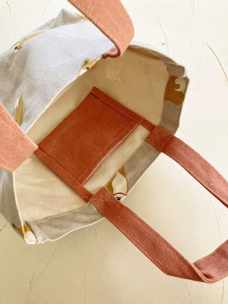 ご近所の買い物や散歩など、いろいろ使い勝手の良いミニトートバックです。