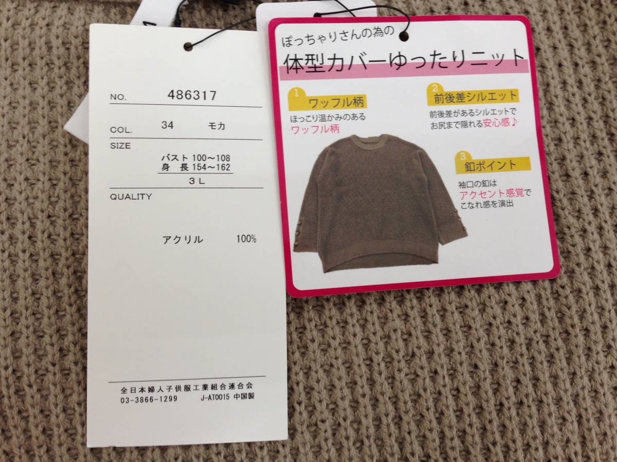 「Vanilla studio/バニラスタジオ」丸首 セーター モカ ワッフル柄 レディース 3Lサイズ を出品致します。