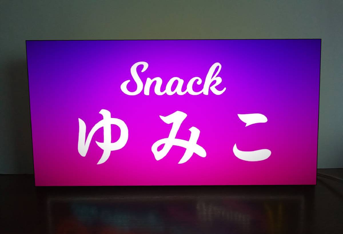 平成レトロ漂うスタンダードなグラデーションカラーのスナック看板デザインのLEDプラスチックライトBOXです! ◆オーダー無料で承ります!!(写真はゆみこ) 自分の名前で!友達・母親・ペットなんでもOK! 自宅に飾ってスナック気分!行きつけのお店のママにプレゼントにも喜ばれています! ご購入頂いた後に、取引画面で名前の変更などお気軽にコメント下さい! 自宅でこの看板のライトを点灯させて 少しでも雰囲気出してたまに宅飲みも良いですよ★ 楽しく、明るくお家時間を楽しめます。 USB12Vジャック・付属アダプターで家庭用電源でも光る2通りの電源使用可能な電光看板です。 本体(アクリルプラスチック製)・表示面(IJバックライト発光フィルム) 縦15センチ×横30センチ×奥行き7センチのコンパクトサイズ、 電源コード約1m弱で直結になっており、 ON/OFFスイッチ付です。 価格もリーズナブルに設定しておりますので、軽量なので置物として誰でも簡単に設置可能です。 お店やお部屋のインテリアに・・話題のネタに・・プレゼントなどに最適です。 ※本体は傷が付きやすく検品は行っておりますので、製作過程の多少の傷は予めご了承下さい。 その都度、完全受注生産ですのでご購入後のお客様ご都合キャンセルはできません。 不良品に関しては、交換・返金対応しておりますので宜しくお願い致します。 ◆他サイズもご用意しておりますので、ご質問欄よりお待ちしております。 ※Lサイズ以上は、コンセント電源のみ(事業者様対象)となりますのでご注意下さい。 Lサイズ縦200mm×横400mm LLサイズ縦300mm×横600mm ◆オリジナルデザイン・オーダー(デザイン別途1500円)も承っておりますので、お気軽にお問い合わせください。 自社製造製品 スナック 飲み屋 平成レトロ 看板 サイン ライト 看板 インテリア雑貨 置物 スナック 飲み屋 平成レトロ 看板 サイン ライト 看板 インテリア雑貨 置物