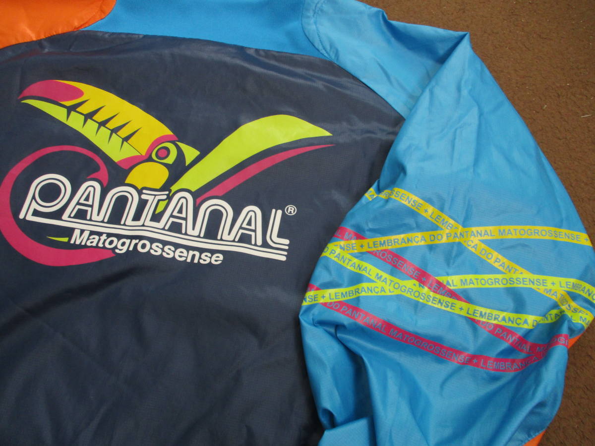 如何にも、パンタナルらしく、ネイビー&ターコイズをベースに、色鮮やかなカラーとロゴが織りなす、クレイジーカラー調の個性的ディティールです。