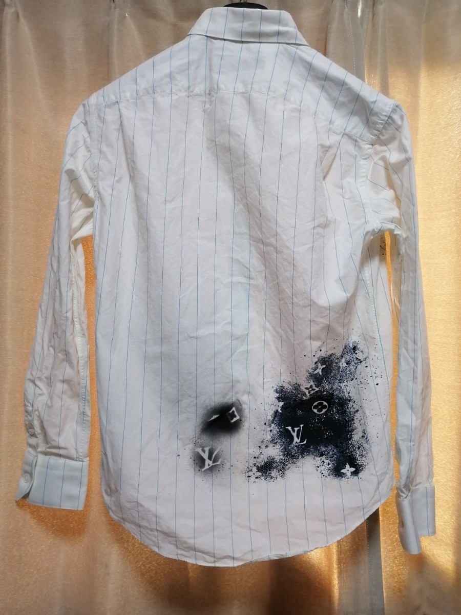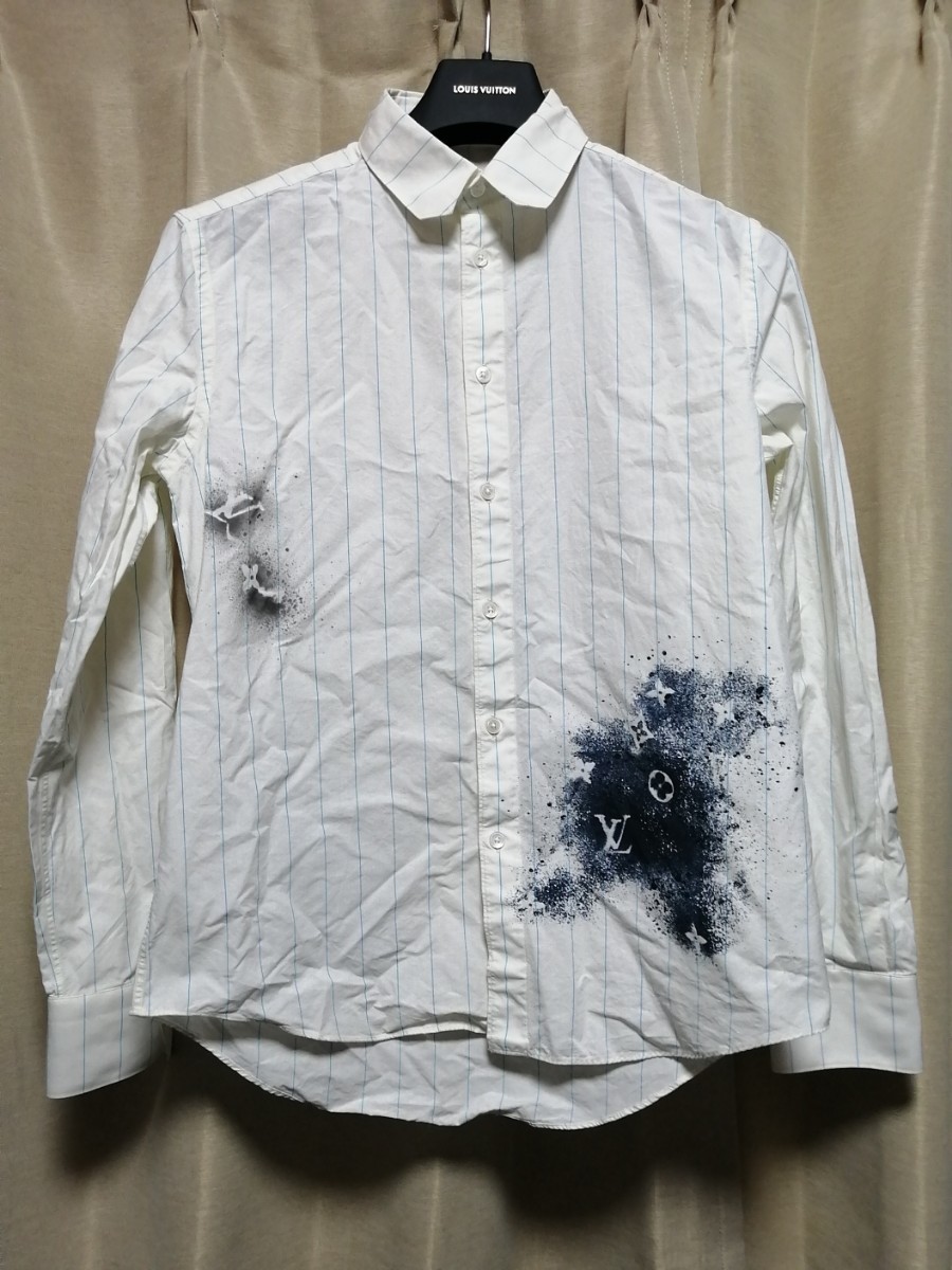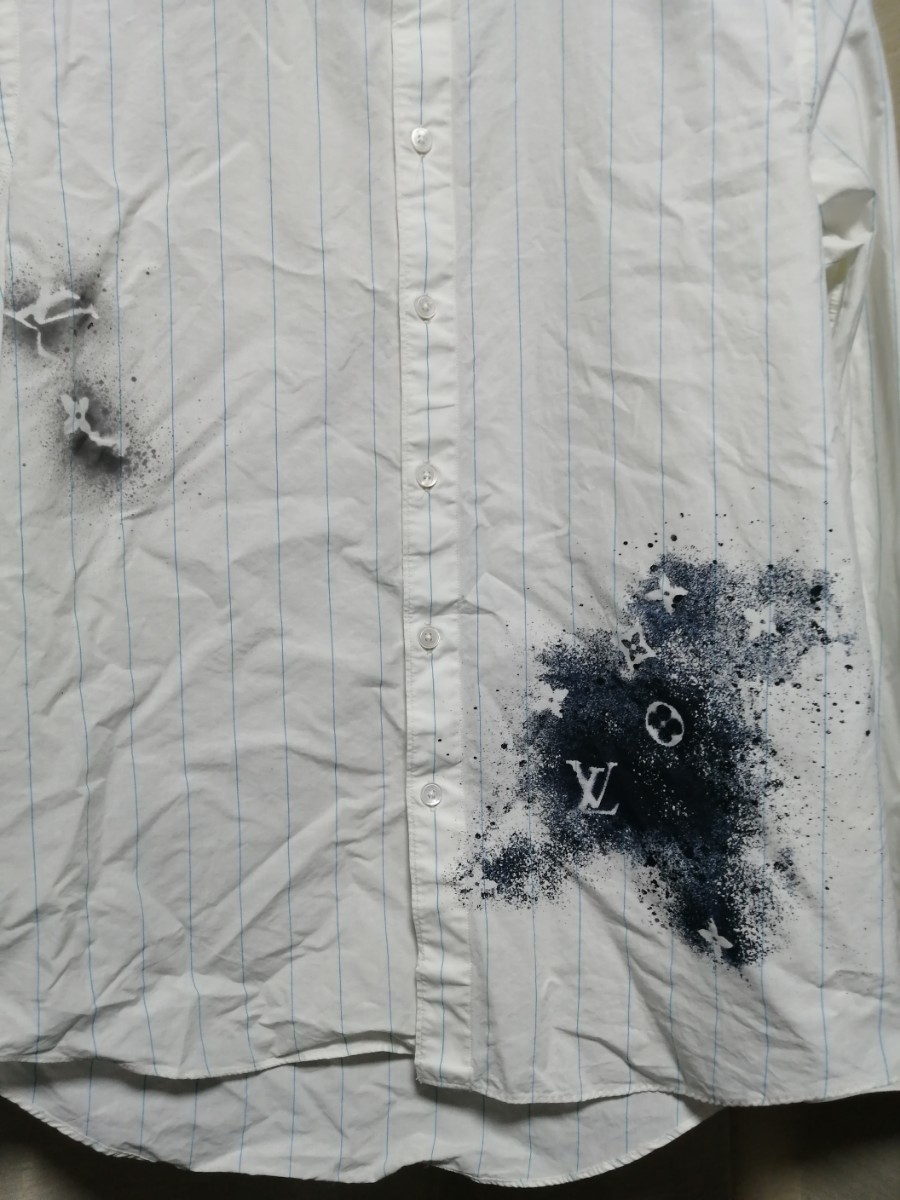 モノグラムスプレー加工シャツ最高傑作一瞬でルイヴィトンと分かるスプレッドモノグラムシャツ バイカラーブラックシャツ