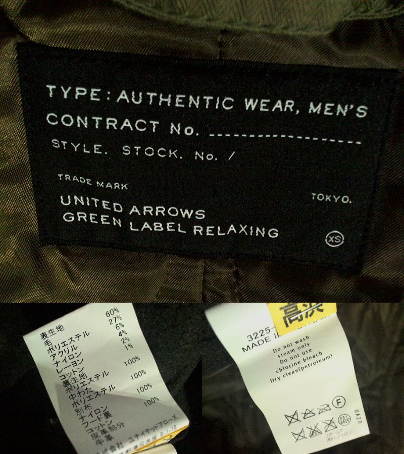 ★送料無料☆ユナイテッドアローズ【UNITED ARROWS GLEEN LABEL RELAXING】モッズコート ミリタリージャケット カーキ系 XS | |