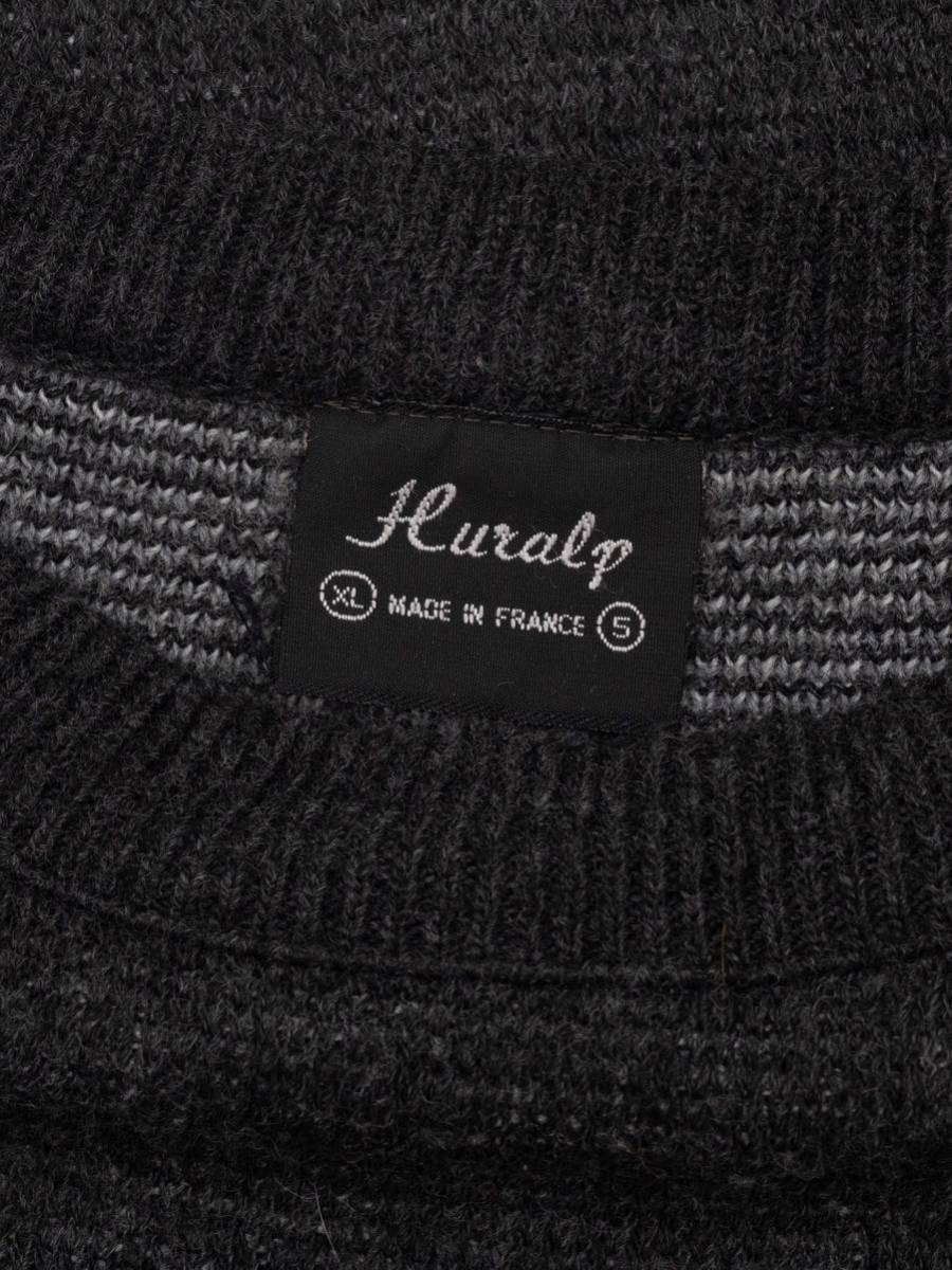 カラーはチャコールグレー。両面に幾何学の編み模様。