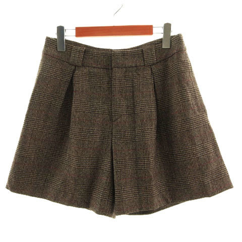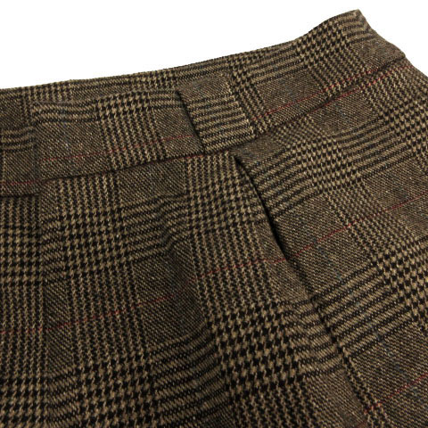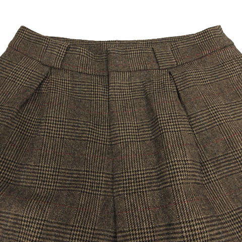イエナ IENA パンツ ショートパンツ タック フレア カシミヤ混 起毛 グレンチェック ブラウン 茶 ベージュ 赤 青 40