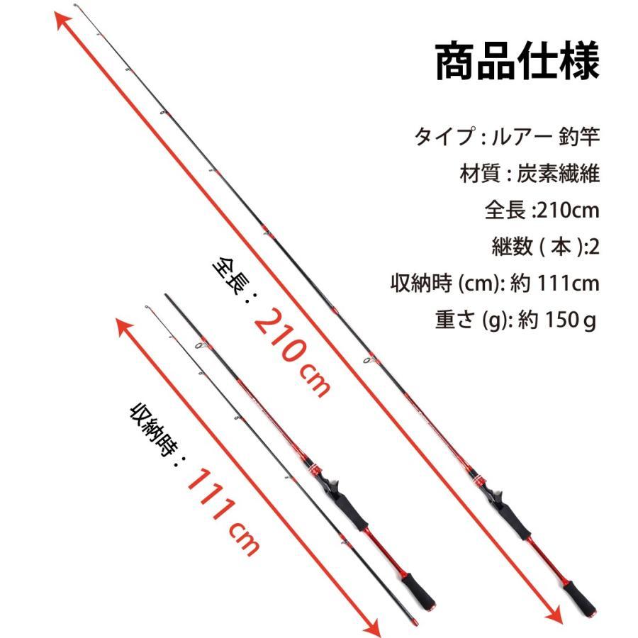 ルアー釣竿 2.1m ブラック 釣りロッド 海 釣り竿 釣竿ロッド海釣り