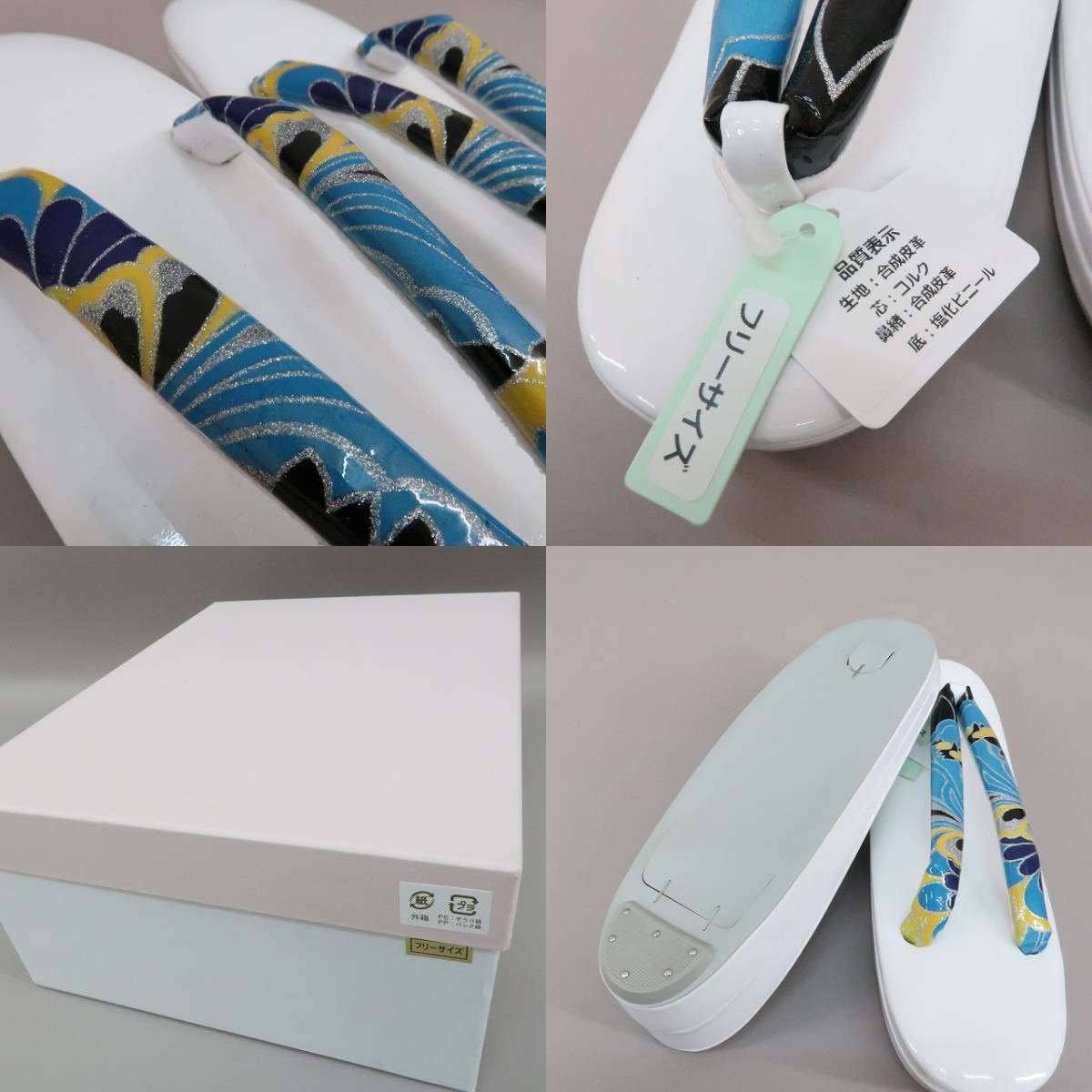 艶を持ったモノトーンに爽やかな差し色が素敵...成人式振袖用草履・バッグ2点セットでございます。
