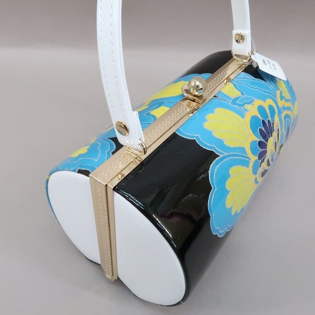 白×黒×多彩なモノトーンに爽やかな差し色が素敵な組み合わせでころんと可愛らしい筒形から溢れそうな大輪の華が表にも裏にもぱっと花咲き、品よく華やかな口金に蛇腹状のマチに内ポケットで整理、出し入れがしやすいバッグは、一本手もお洒落。バッグの柄と揃えた鼻緒の柄が一歩一歩を彩る草履は、天から巻まで色を統一して緩やかな傾斜で足に優しく、着姿を美しく見せる5.5センチの高さも丁度良く、足元はこれで完璧。
