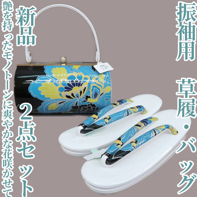 tomihisa 新品 2点セット 成人式 着物 振袖用“艶を持ったモノトーンに爽やかな色を花咲かせて”草履・バッグ 2364