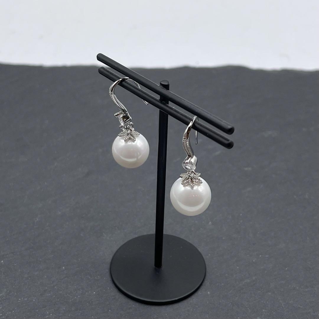 大粒のパールが特徴的なシンプルなフックピアスになります^ ^