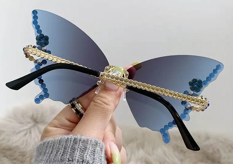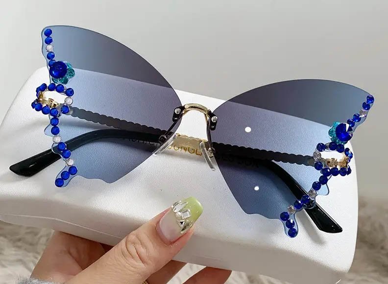 新品 サングラス 蝶々 バタフライ グラデーション 419 青 ブルー BLUE ラインストーン プラム 仮面舞踏会 コスプレ キャバ嬢 ロック